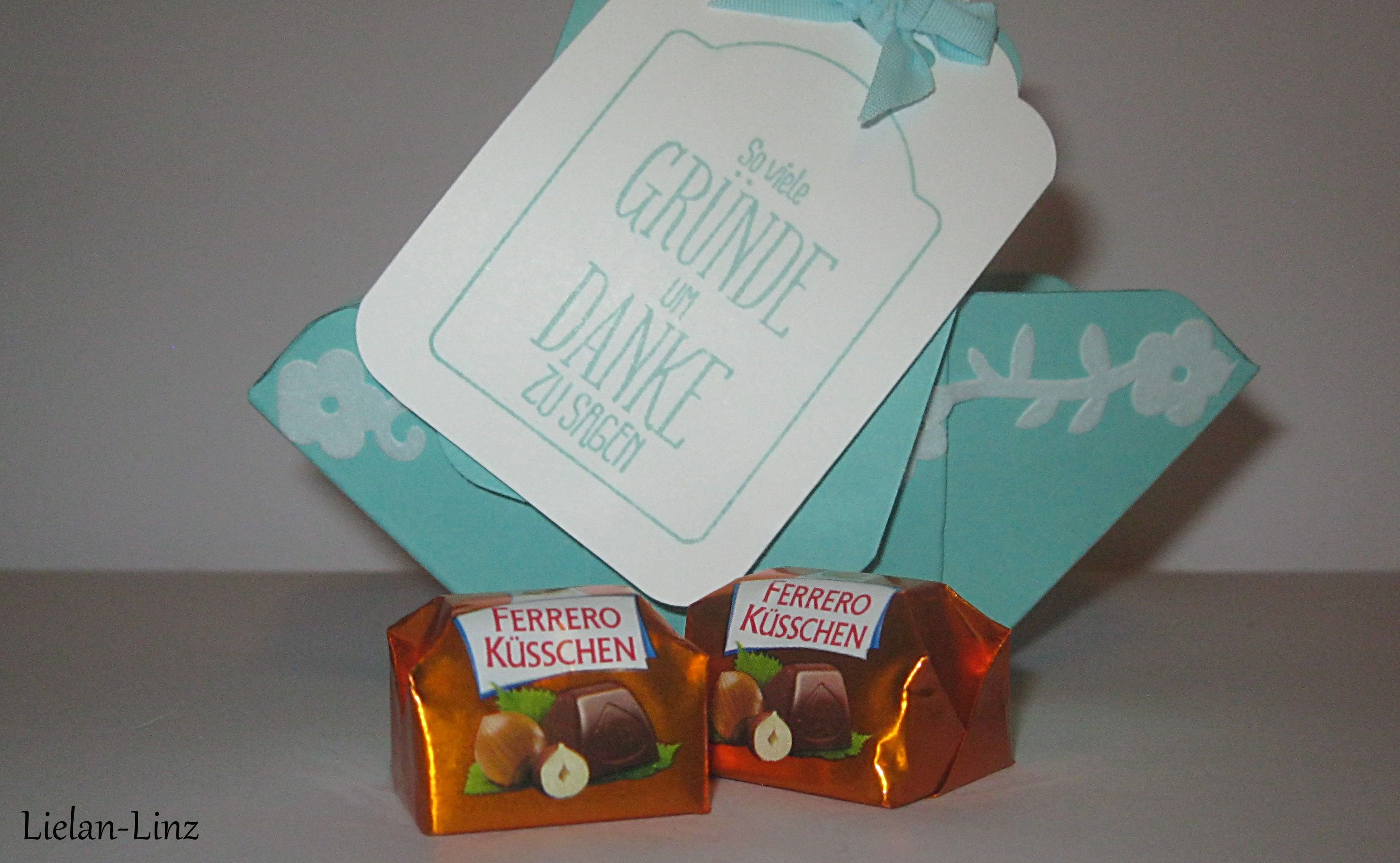 Der Stempel stammt aus dem Set „Mein Lichblick“ aus der aktuellen Stampin‘ Up Sale-A-Bration Aktion und als Farbe habe ich dieses Mal Aquamarin gewählt, weil das meiner Meinung nach am besten mit Jade harmoniert. Die kleine Schleife habe ich mittels der Gabel-Technik gemacht .. auch dazu gibt es Unmengen an Anleitungsvideos auf youtube :-)
