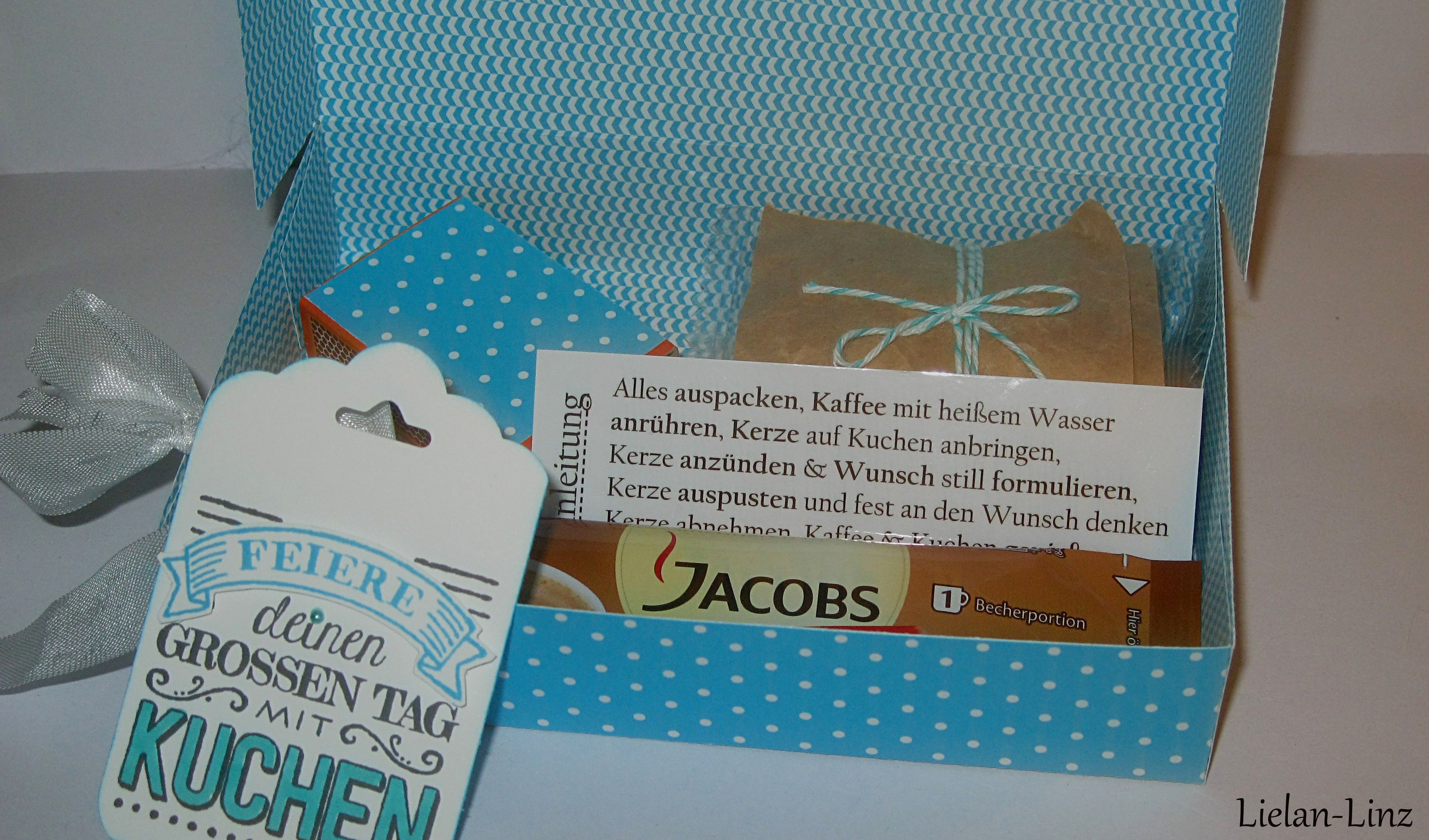 Gestern hatten wir eine wirklich lustige Geburtstagsfeier bei einer ganz lieben Freundin und was gehört zum Geburtstag automatisch dazu? Natürlich ein Geburtstagskuchen :) Und weil ein ein Guglhupf oder eine Sachertorte ganz einfach zu langweilig ist, habe ich dieses Mal den Geburtstagskuchen nach Anleitung von Renate (www.schnipseldesign.com) verschenkt. Die einzige Änderung, die ich vorgenommen habe: ich habe den Geburstagskuchenbausatz von Renate noch um Kaffee ergänzt … weil der gehört für mich einfach zum Kuchen dazu :)