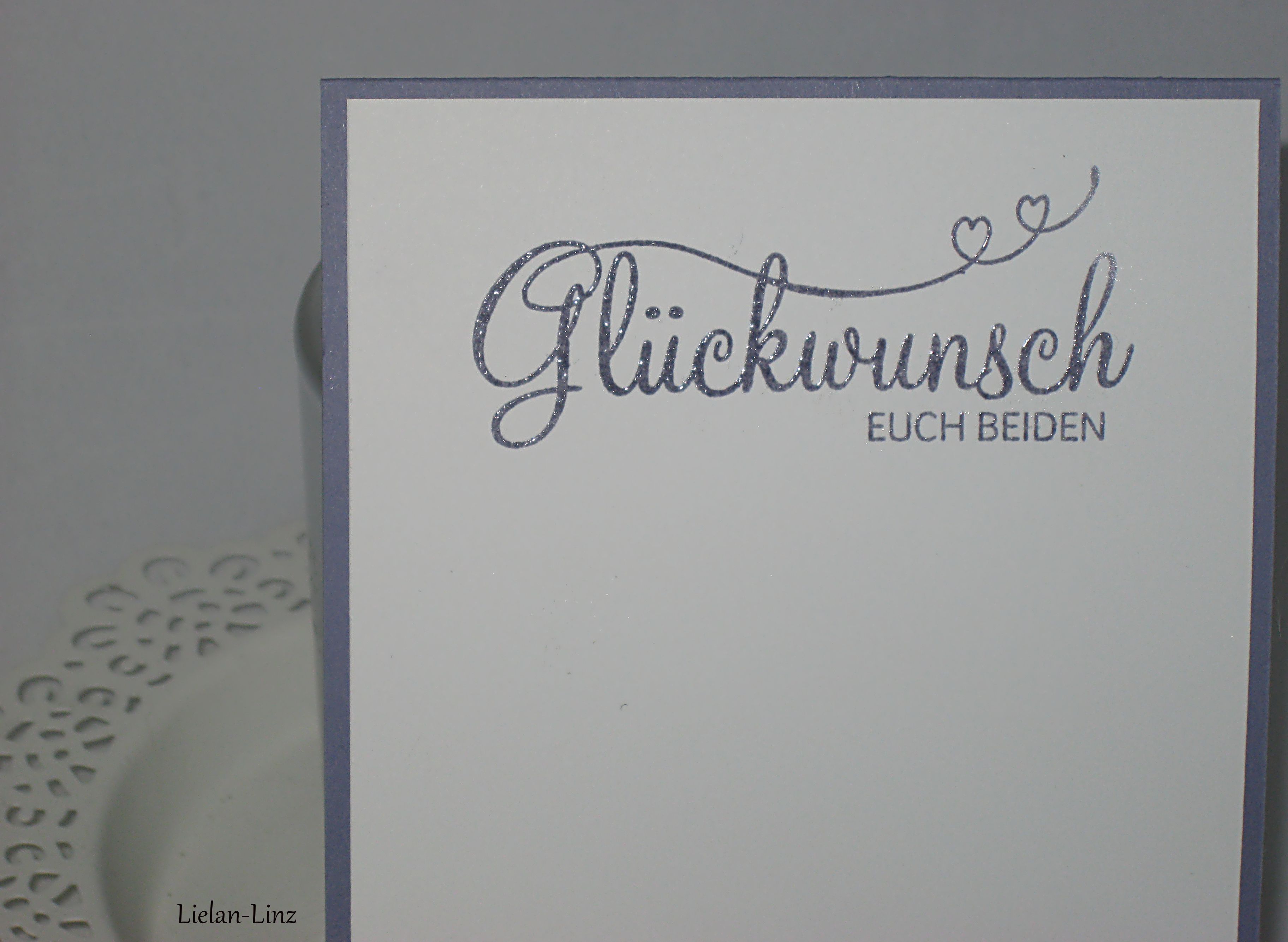 Ziemlich schlicht, dafür ausreichend Platz für persönliche Wünsche an das Brautpaar. Der Stempel stammt ebenfalls aus dem Set „Perfekter Tag„.