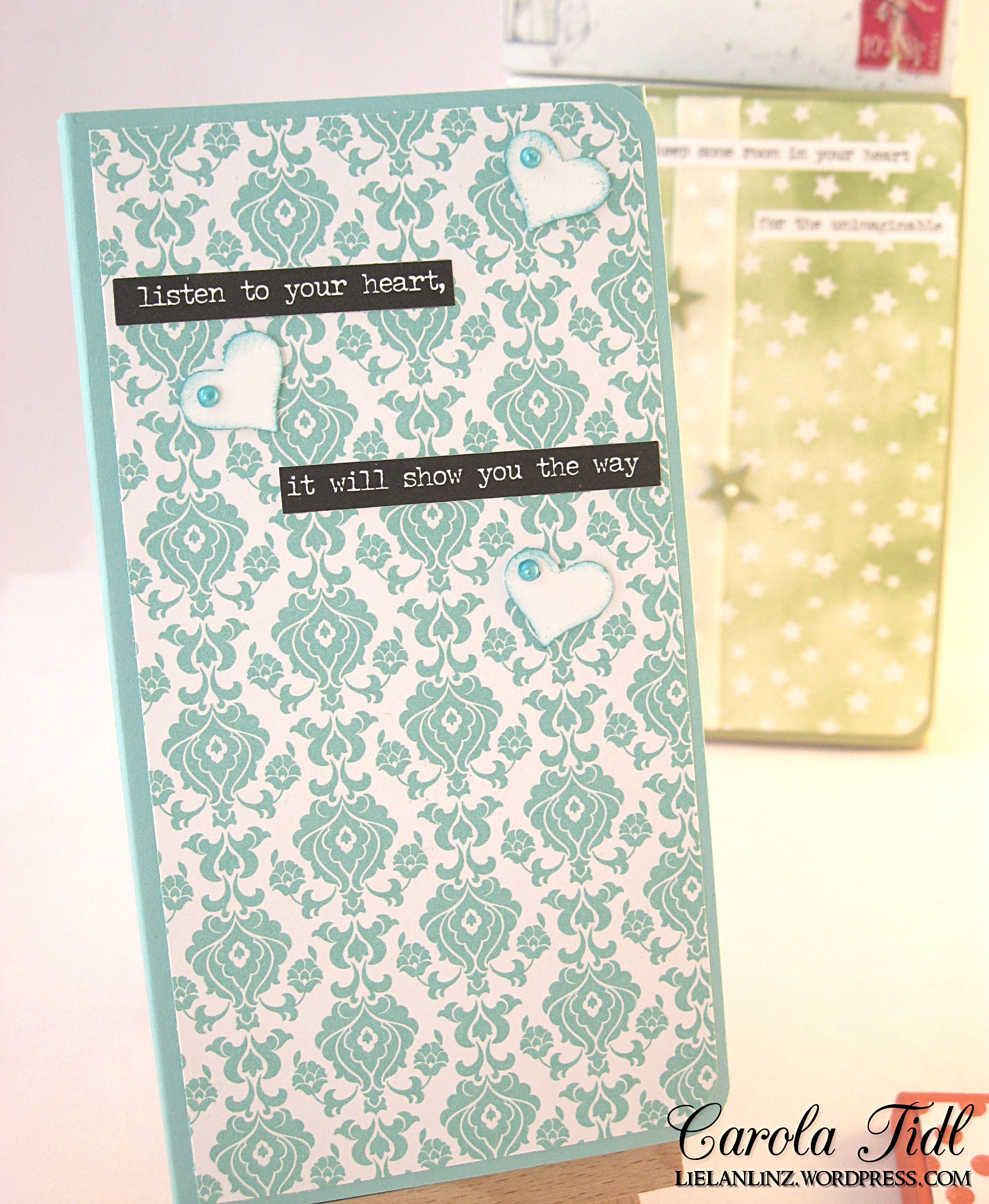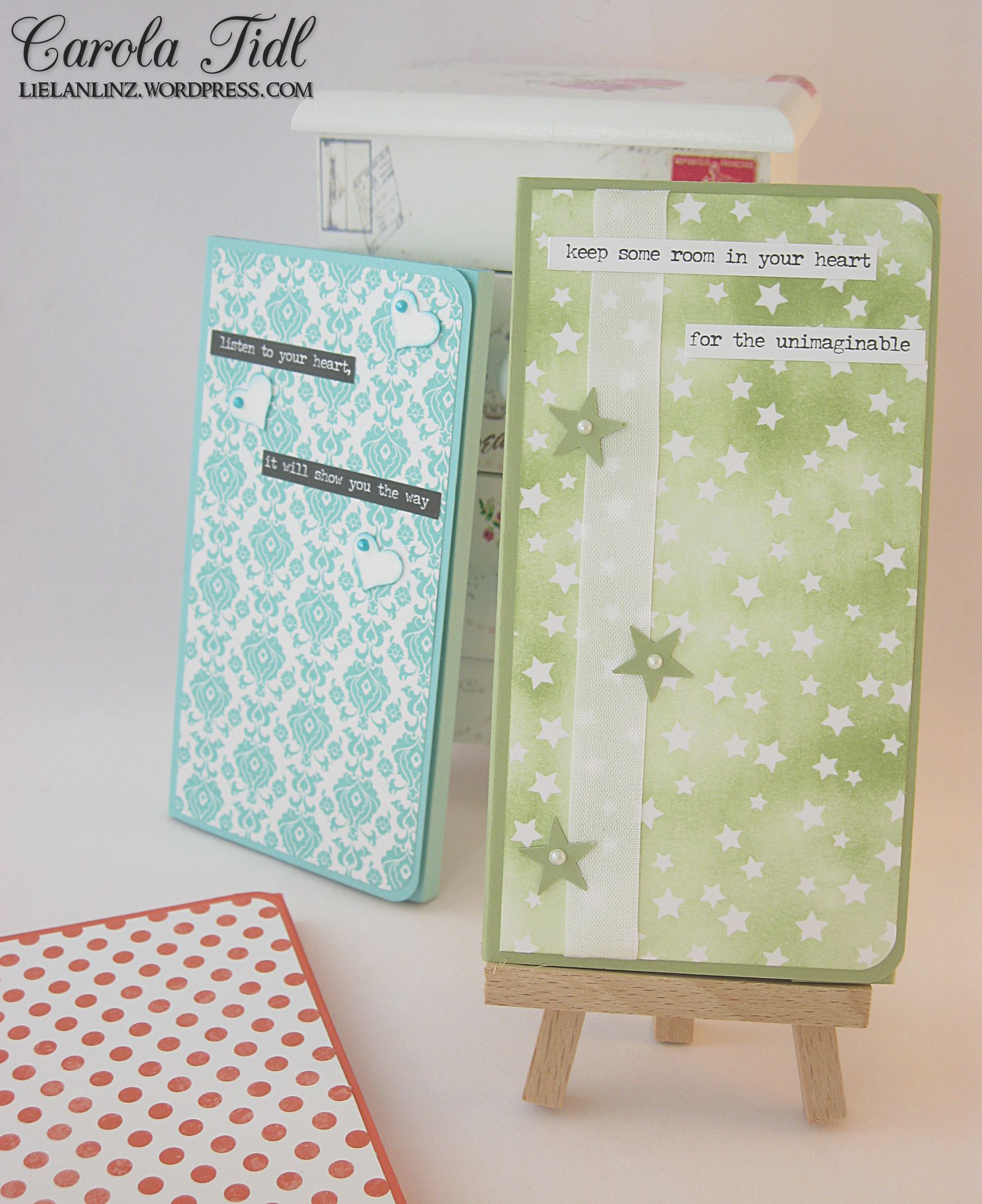 So oft gesehen, für gut befunden und nachgemacht :-) Die Möglichkeit, einfache Notizbücher und -blöcke zu verschönern. Meine Blöcke sind von Ikea, nennen sich Fullfölja und sind in grau-weiß gehalten. Eingebunden habe ich diese in den Farben Jade, Pistazie und Calpyso. Ich habe mich für unterschiedliches Designerpapier entschieden und auch das Dekor ist bei allen drei Blöcken anders gehalten: Sterne, Herzen und ein Schleifchen :-D