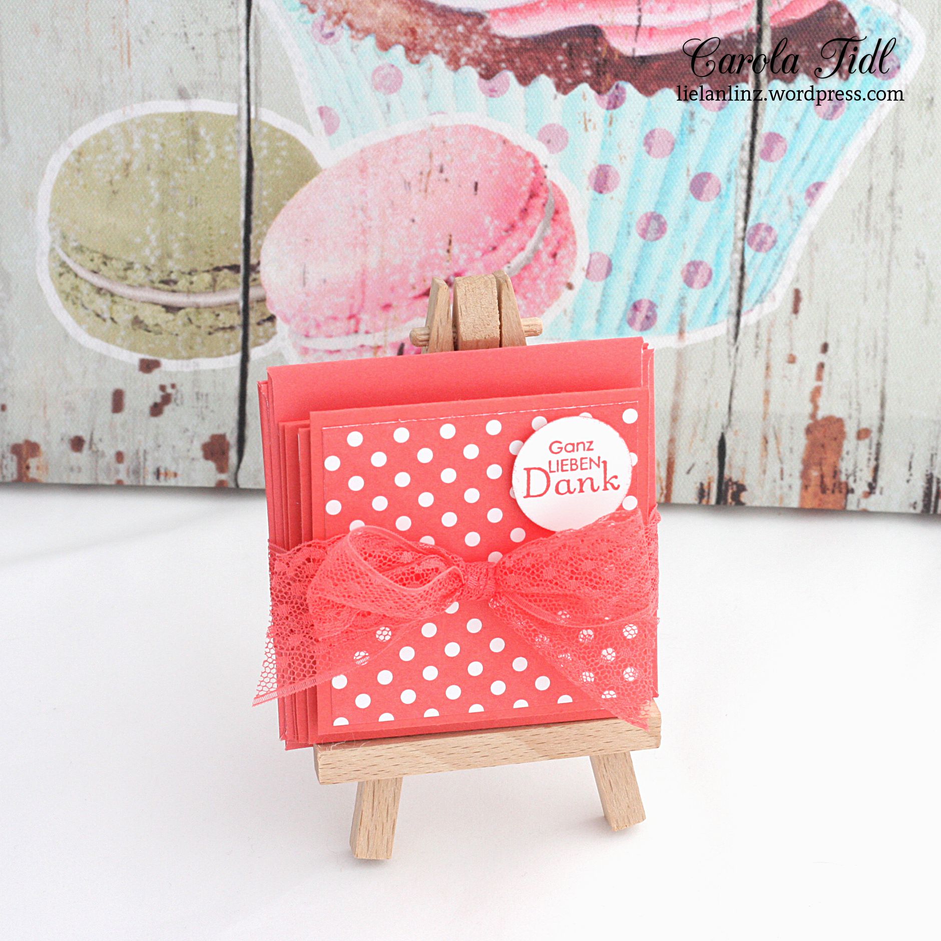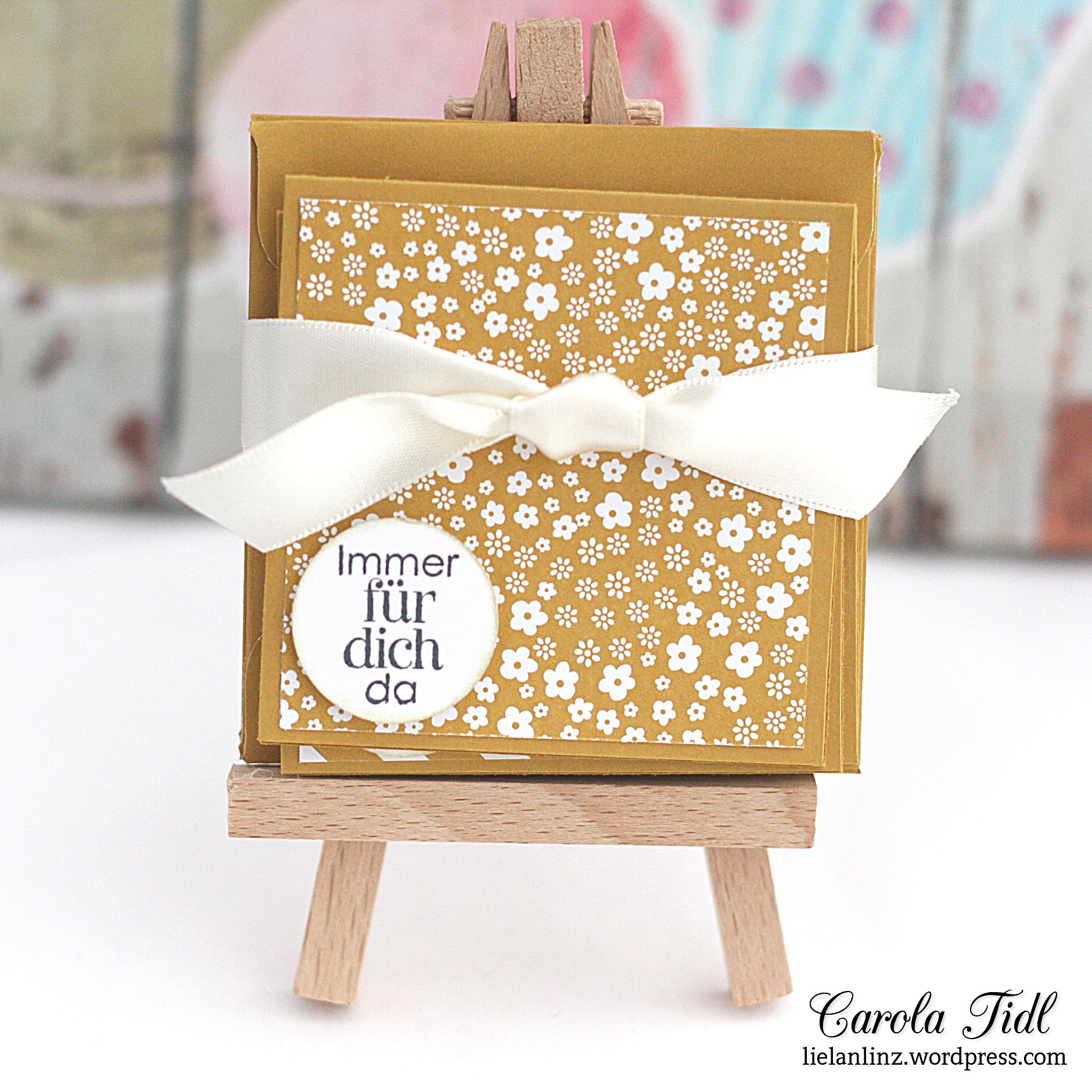 Die Überschrift sagt schon einiges. Im Paket für Corinne finden sich ein paar kleine Pakete mit jeweils 4 Kärtchen mit den Maßen 7×7 cm mit den passenden Umschlägen. Alles ist 100 % selbstgemacht, auch die Umschläge … wozu gibt’s das Envelope Punch Board :-)