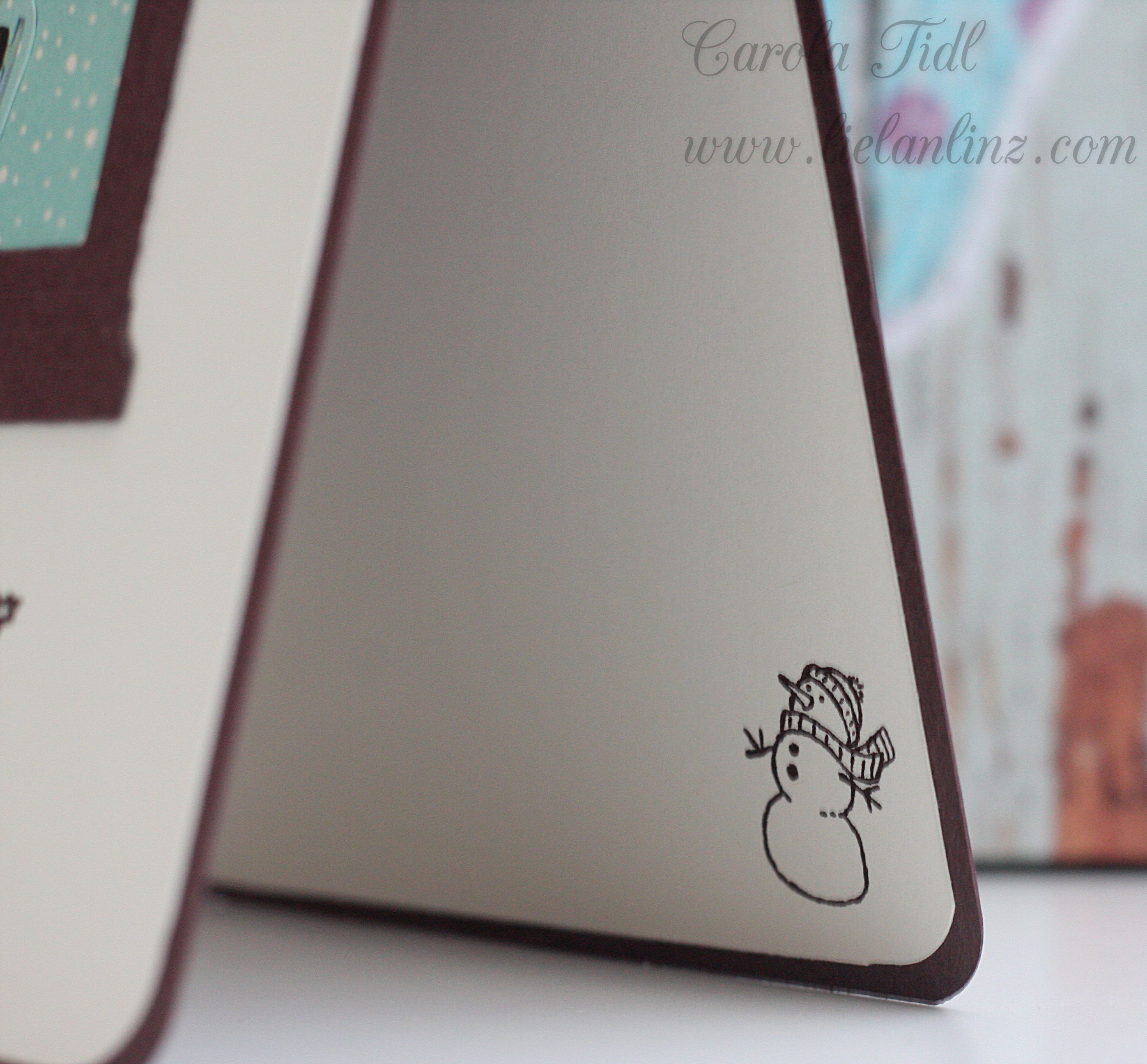 Als kleinen „Hingucker“ haben wir noch den kleinen Schneemann aus dem Stempelset „Weiße Weihnacht“ gestempelt.