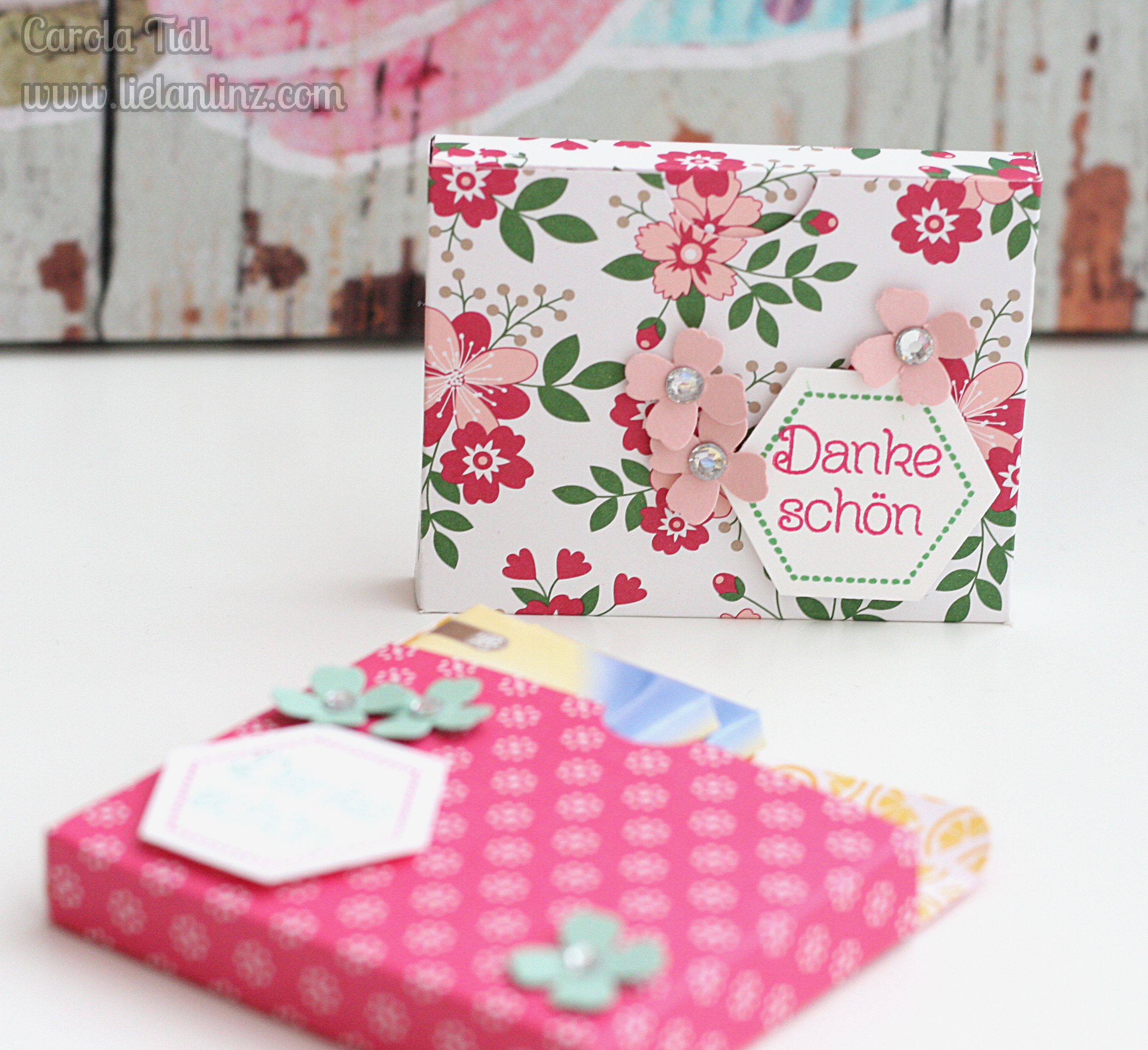 Dass das Designerpapier „Liebesblüten“ zu meinen absoluten Favoriten des neuen Frühlingskataloges von Stampin‘ Up! zählt, ist euch ja schon bekannt ;-) daher ist es wahrscheinlich nicht verwunderlich, dass meine letzten Danke-Goodies für meine Kundinnen aus diesem Papier gemacht sind:
