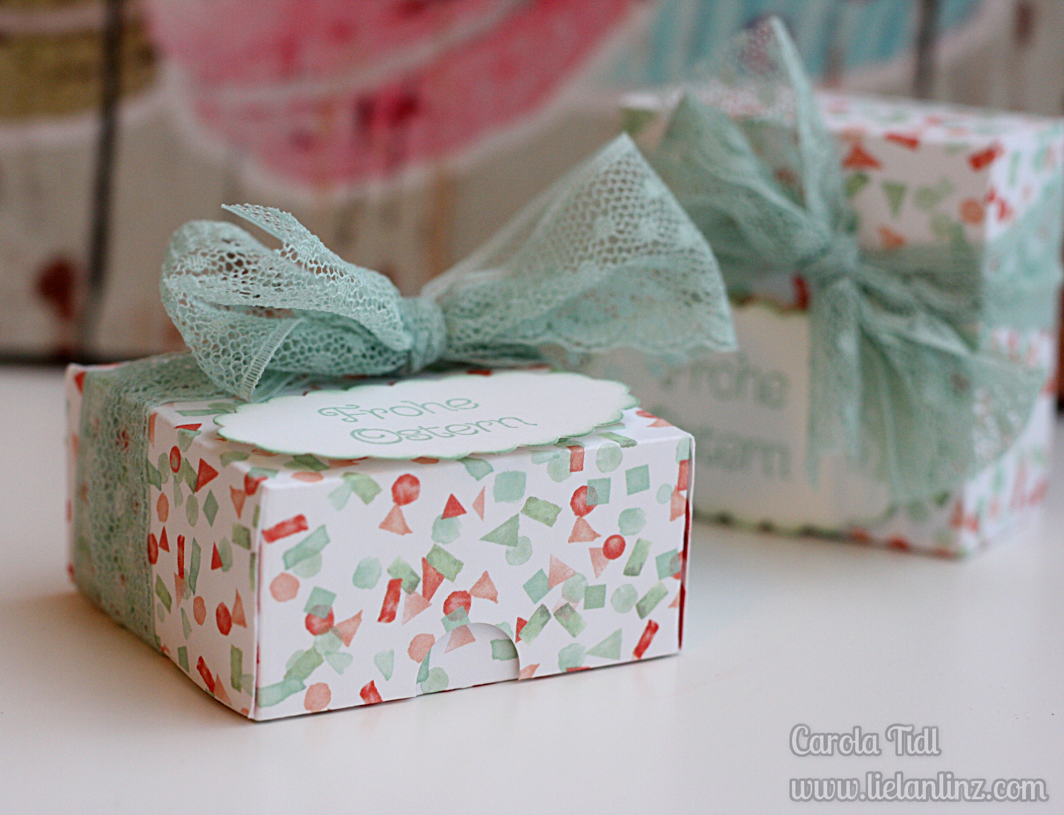 Kleine Geschenke können wir doch immer brauchen: für Familie, Freunde, Arbeitskollegen, Nachbarn – diese Art der Geschenkboxen geht ganz besonders schnell und passt daher auch perfekt in die „Aus 1 mach 5 – Ostern“ Woche: