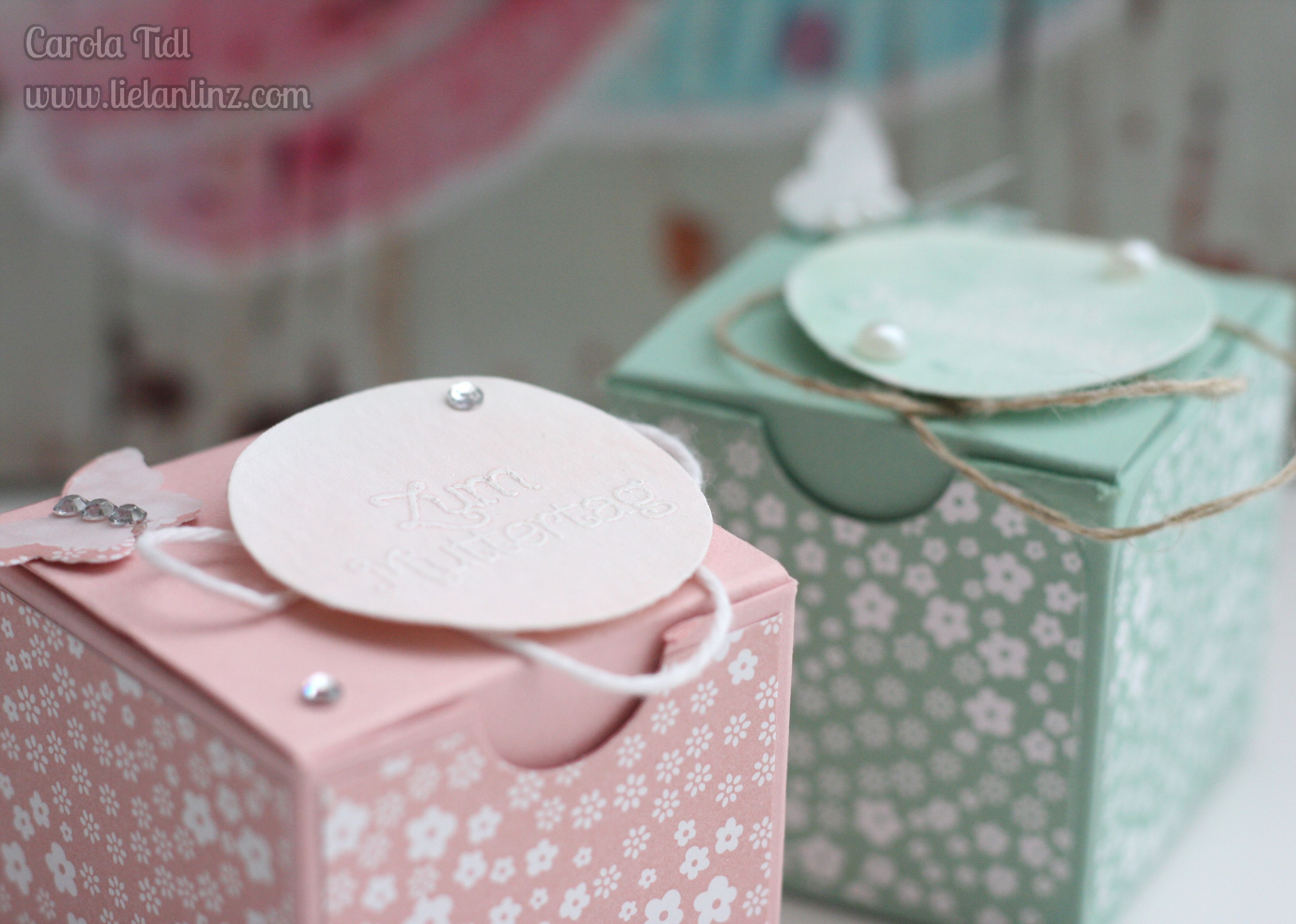 Liebe Carola, ich bin total begeistert von Deinem Blog. Du hast seht schöne Fotos und super super Videoanleitungen. Meine volle Bewunderung. Und die Boxen sind supersüß. Sie erinnern mich an die fertigen Sandfarbigen SU-Boxen, nur dass man mit Deiner Anleitung alle Farben machen kann. Ich werde bestimmt öfters bei Dir vorbei schauen. Liebe Grüße und Danke Geli
