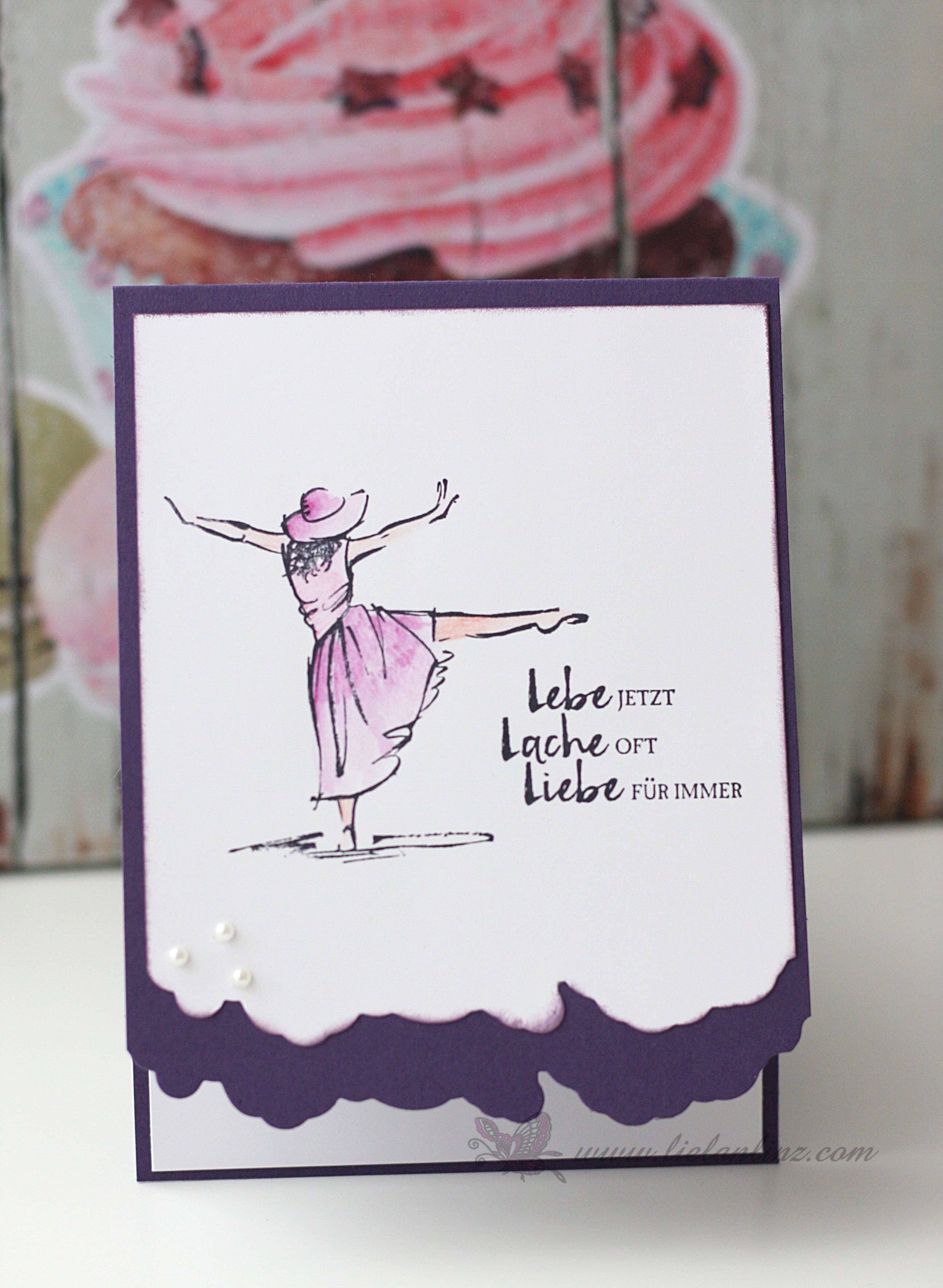 Für einen Geburtstag schien mir der Spruch aus dem Stempelset „Mit Stil“ angemessen – als Motiv die Tänzerin aus dem gleichen Stempelset.