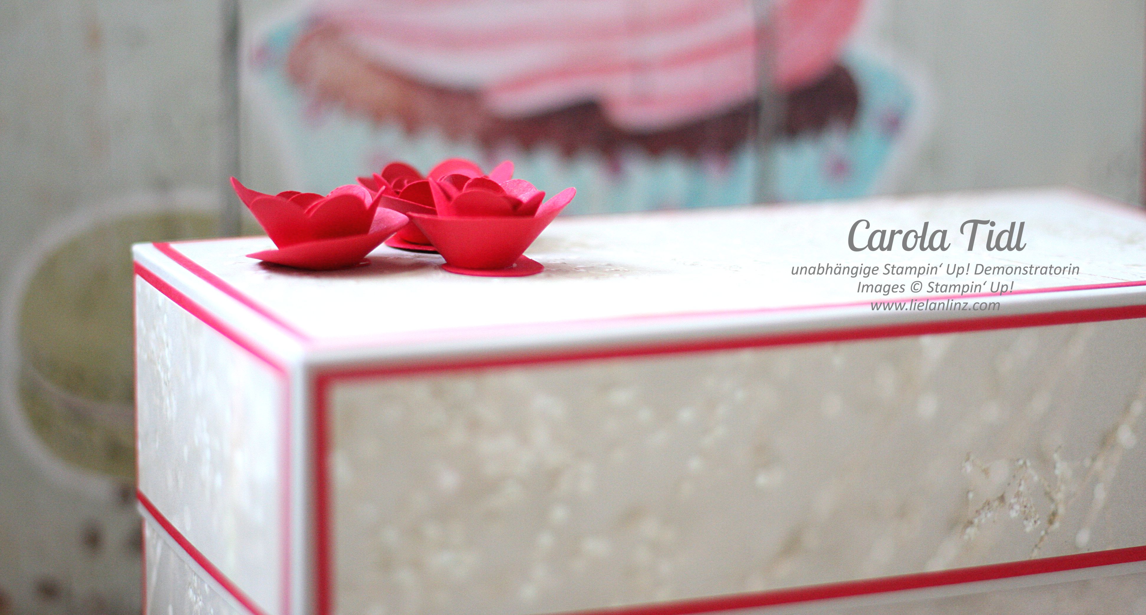 Leider kann ich euch urlaubsbedingt kein Video zeigen, dafür möchte ich euch eine meiner letzten Arbeiten – nämlich eine Hochzeits-Explosionsbox – zeigen.