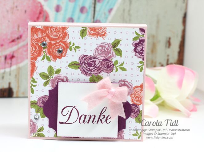 Ich kombiniere hier Farbkarton in Puderrosa mit dem Designerpapier Blumengarten.