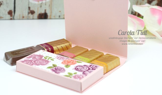 Nachdem die Tage viel zu heiß waren, um Schokolade zu verbasteln und zu verschenken, zeige ich euch meine Variante eines schokoladigen Dankes erst heute :-)