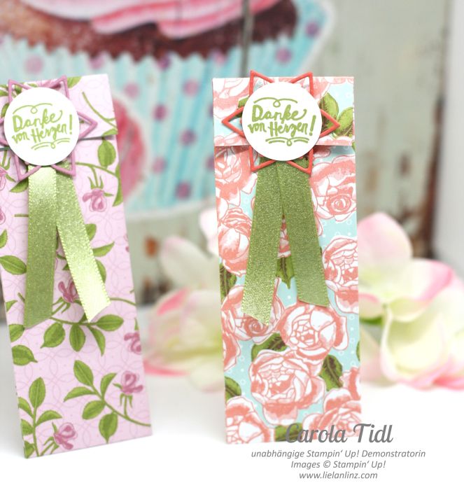 Es handelt sich hier um Danke-Geschenke für meine Bestellerinnen .. diese kleinen Goodies, die ich dann zu den Bestellungen dazu packe, mache ich von Zeit zu Zeit wieder auf Vorrat, und jetzt war’s mal wieder an der Zeit, den Bestand aufzustücken.