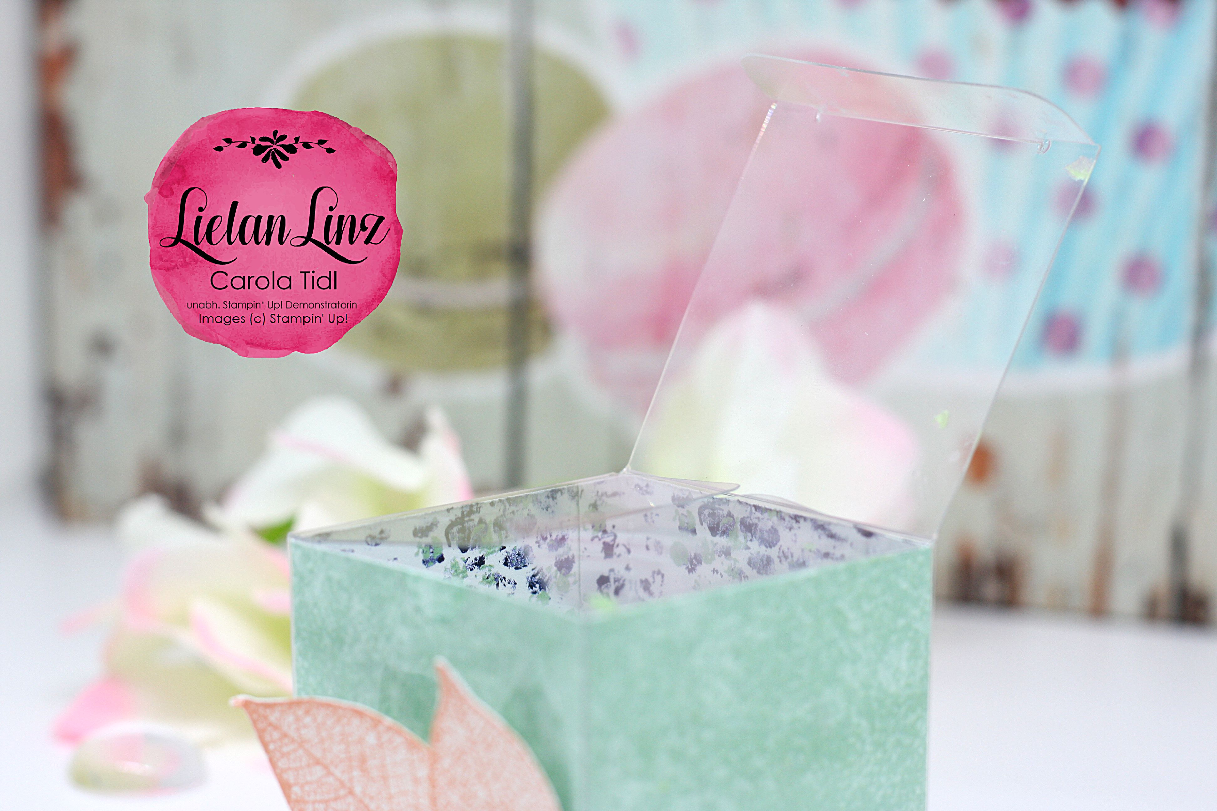 Neben der Schachtel, die es erfreulicherweise in den neuen Jahreskatalog von Stampin‘ Up! geschafft hat *gg* habe ich neue Designerpapier und neue Stanzen verwendet – all das ist dann ab dem 1. Juni 2018 erhältlich.