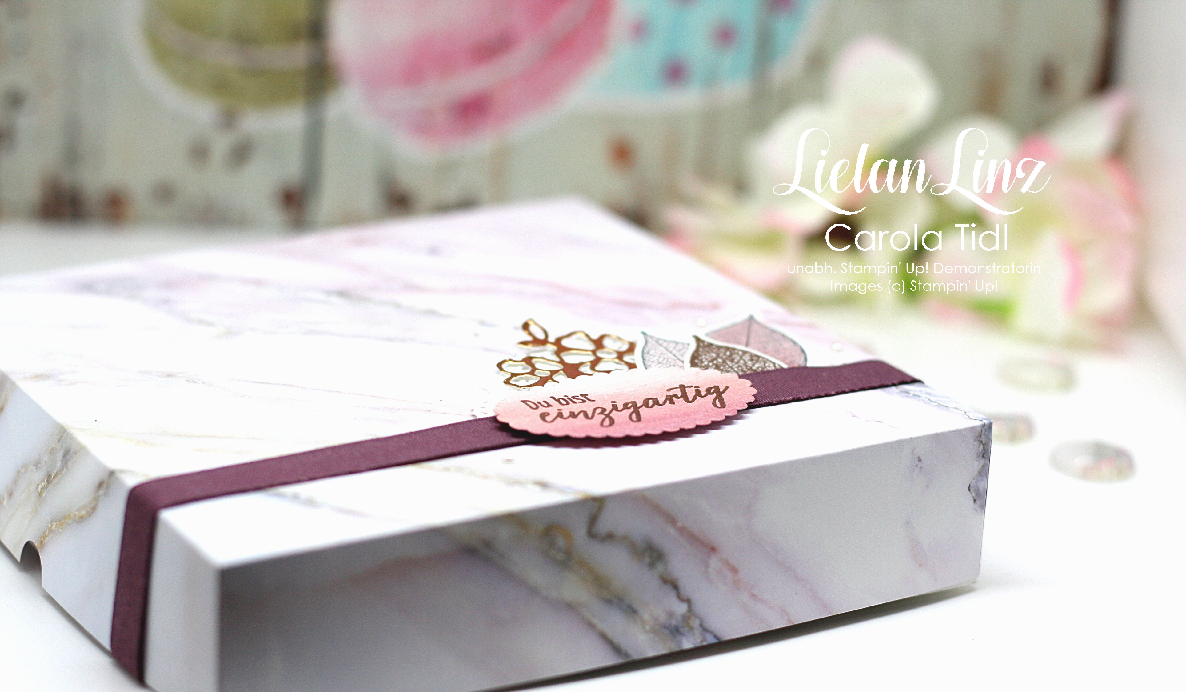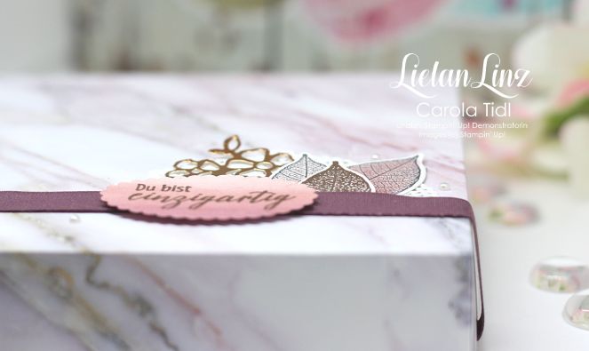 Eingefasst wird der Deckel hier mit dem Band in Feige, das es im letzten Jahreskatalog gab, als Feige eine der neuen In Color 2017-2019 präsentiert wurde.
