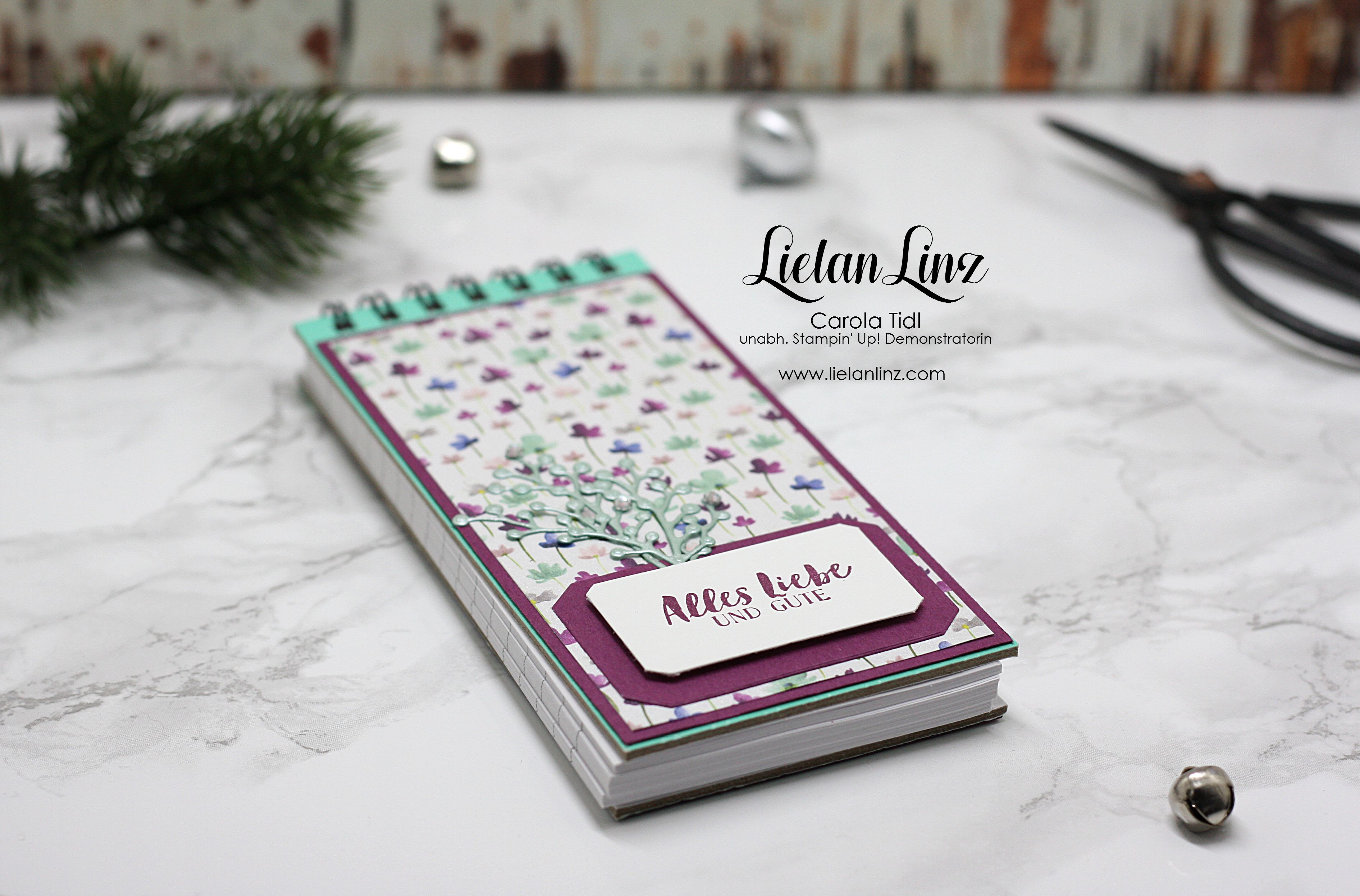 Zur Mitte der Woche dekorieren wir einen Spiralblock. Du kannst da jeden handelsüblichen Spiralblock verwenden, der Dir z.B. beim Discounter unterkommt. So lassen sich auch die einfachsten und günstigsten verschönern und personalisieren.