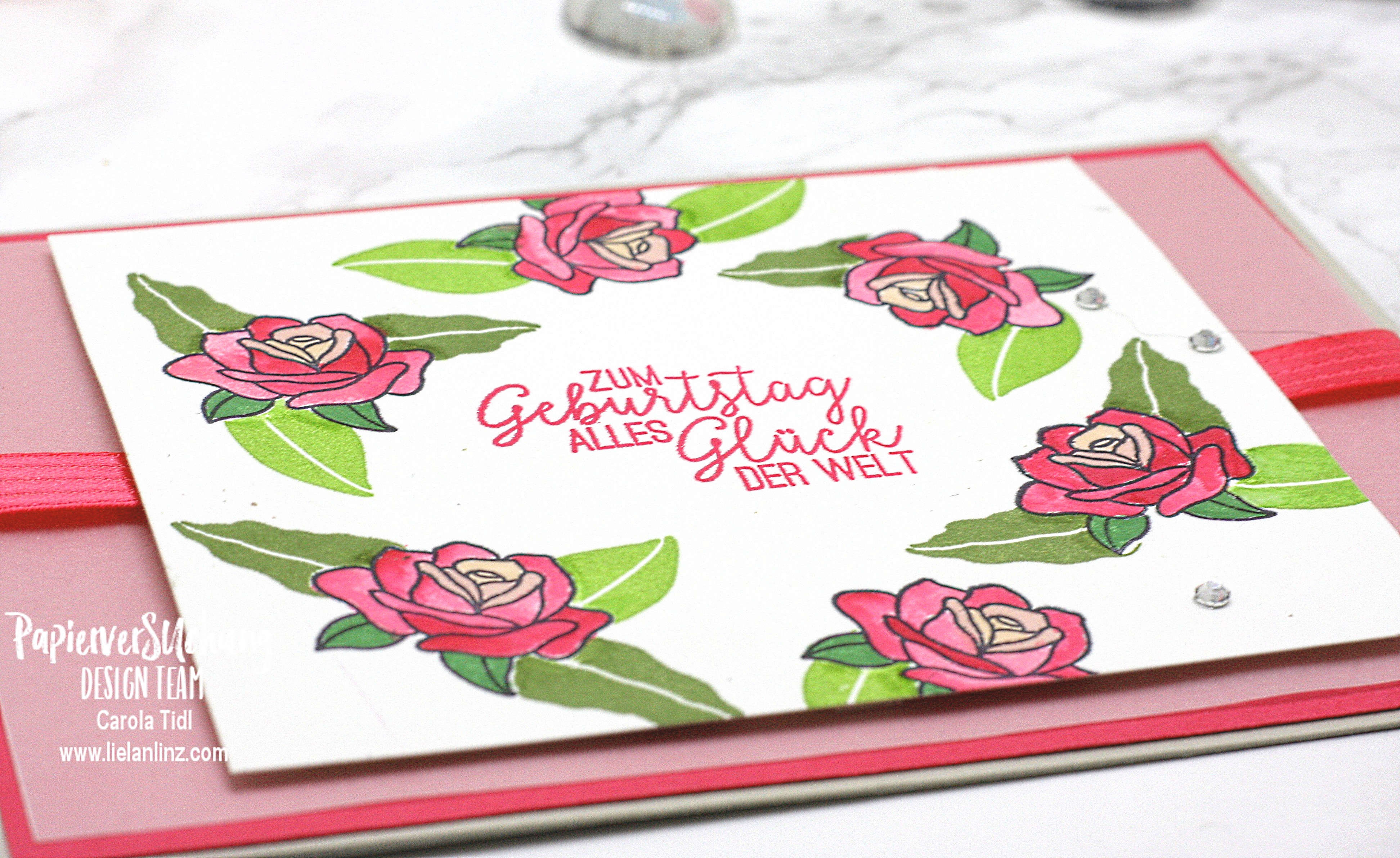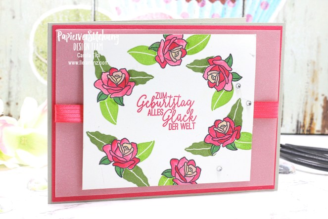 da war ich jetzt sehr neugierig, welches Set du benutzt hast. Das Set kenne ich, hätte die Rose aber eher einem anderen Set zugeordnet. Die Karte ist super schön. Das zeigt mal wieder, wie vielfälltig die Sets einsetzbar sind.