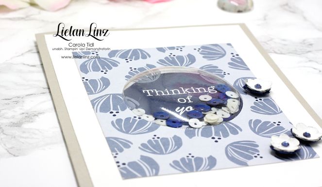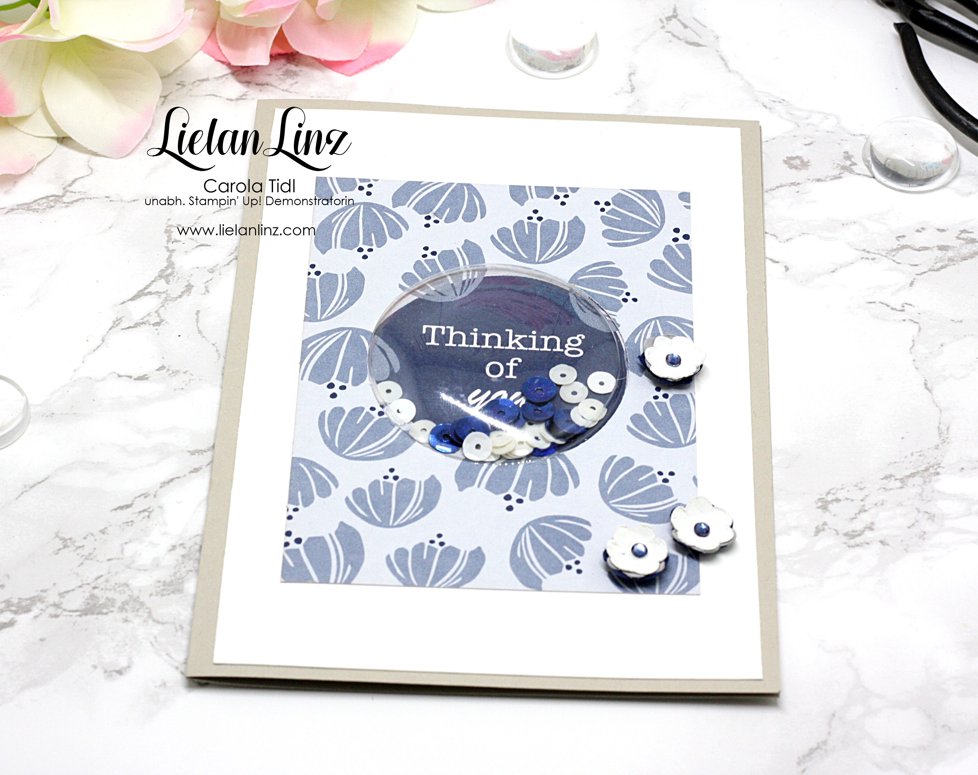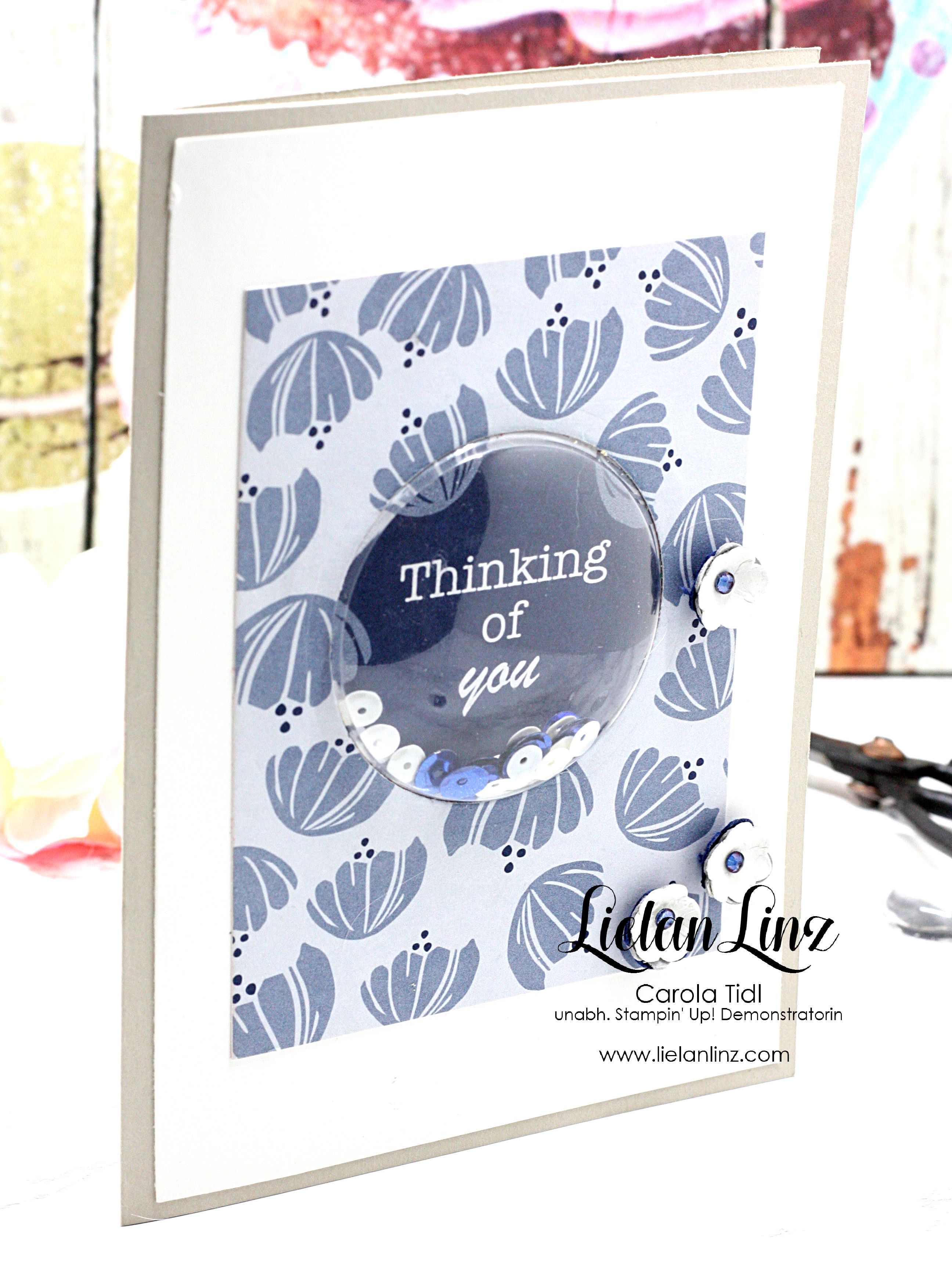 In die Mitte hab ich dann noch ein Shakerelement eingabaut mit ein paar Pailletten, die ich noch zu Hause hatte.