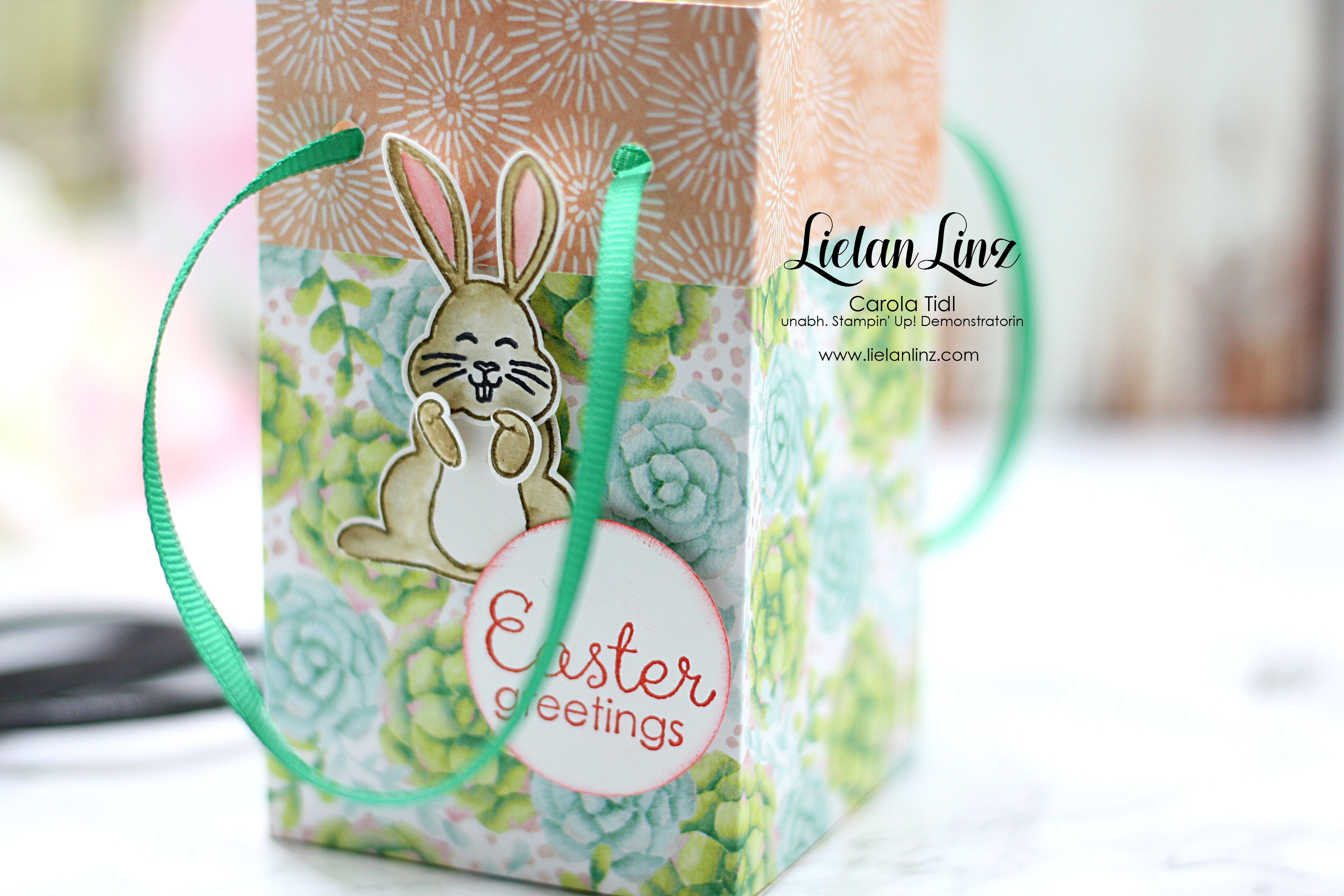 Ostern hat uns voll im Griff und heute zeige ich euch eine Geschenktüte, bei der ich wieder mit dem süßen Häschen aus dem Produktpaket Hasengrüße gearbeitet habe.