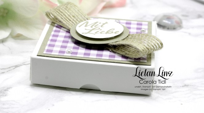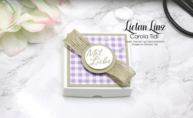 Heute zeige ich euch, die letzte Variante, die ich herzeigen durfte. Wir haben mit dem Designerpapier Gartenglück aus dem Frühling Sommer Katalog 2019 von Stampin‘ Up! gearbeitet.