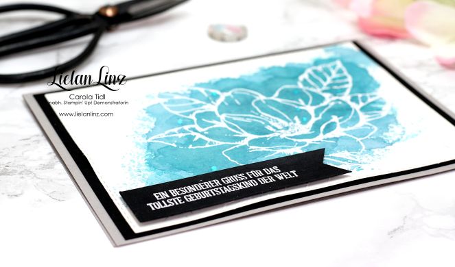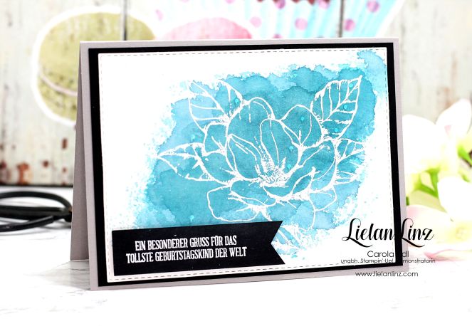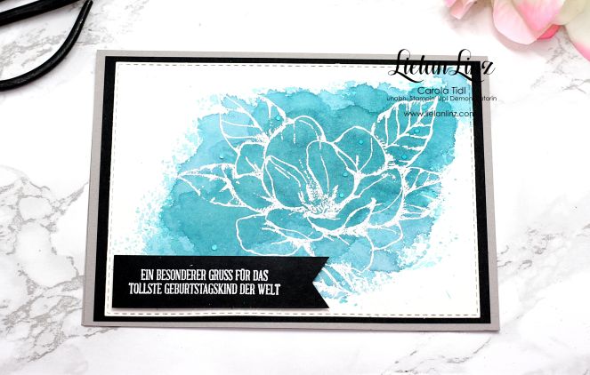 Ihr wisst ja sicherlich, dass ich zwei absolute Favoriten aus dem neuen Jahreskatalog von Stampin‘ Up! habe .. naja .. allzu neu ist er ja nicht mehr und wir Demos erwarten Ende Juli bereits auch schon den Herbst-Winter-Katalog .. aber ich konnte es dennoch nicht lassen, nochmal eine Geburtstagskarte mit dem Stempelset Magnoliengruß zu werkeln.