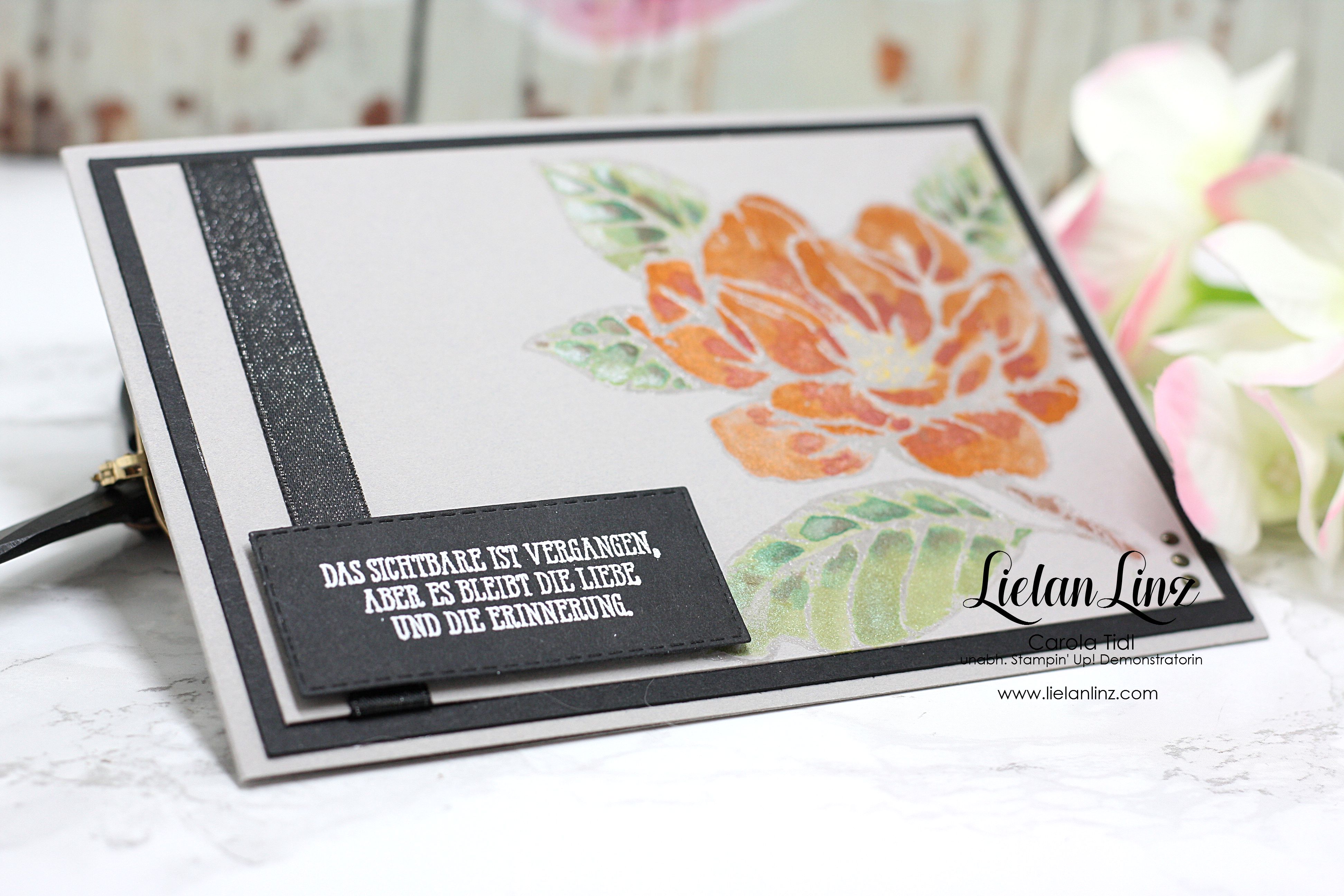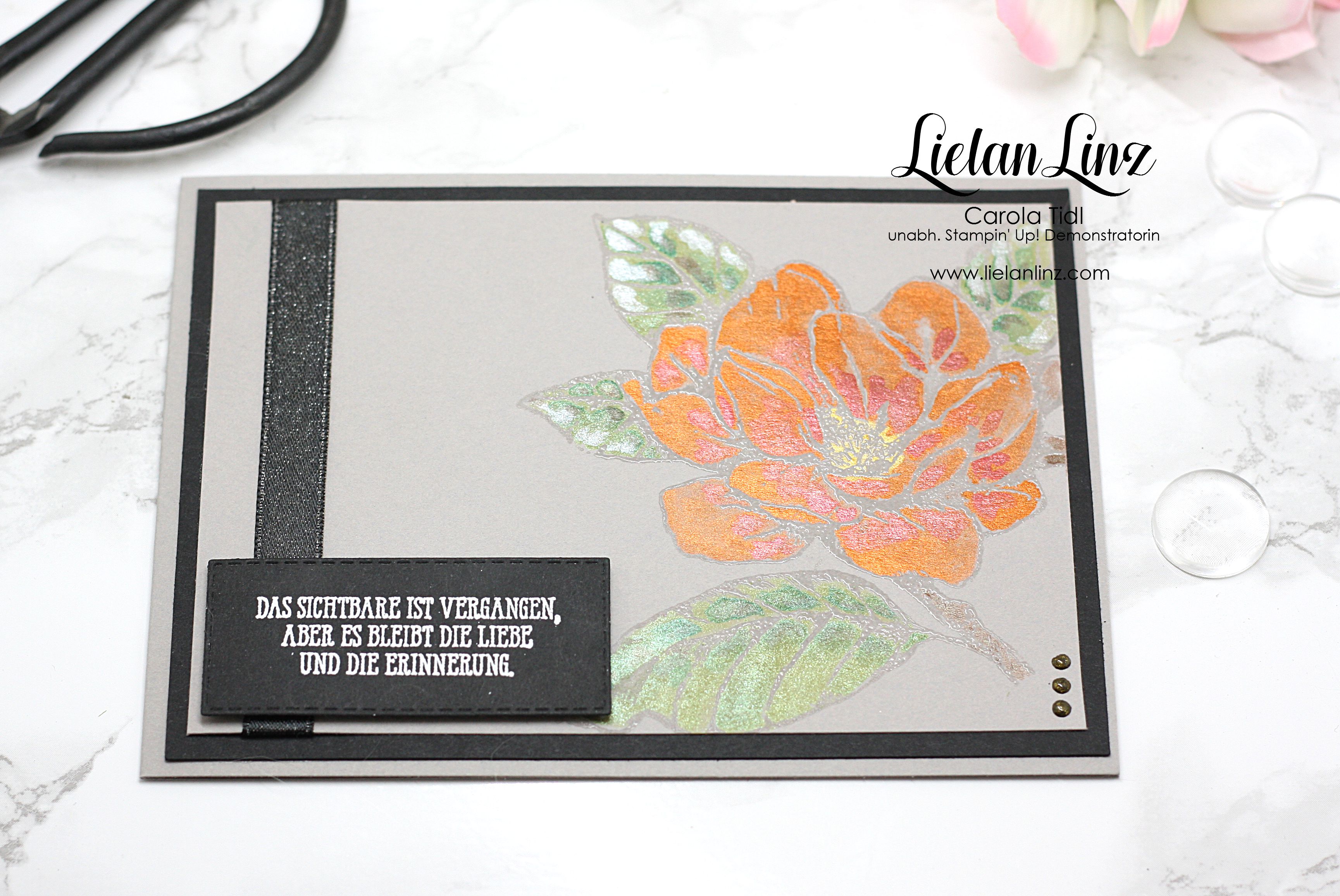 Niemand mag sie wirklich gerne machen, dennoch kommen wir alle mal in die Situation, welche zu benötigen – eine Trauerkarte. Ich habe hier das Glück, keinen Anlassfall gehabt zu haben. Die Karte stammt aus der ich-versuch-das-Mal-Serie und ist eigentlich eher durch einen Unfall heraus entstanden. Geplant war eigentlich eine Geburtstagkarte :-o