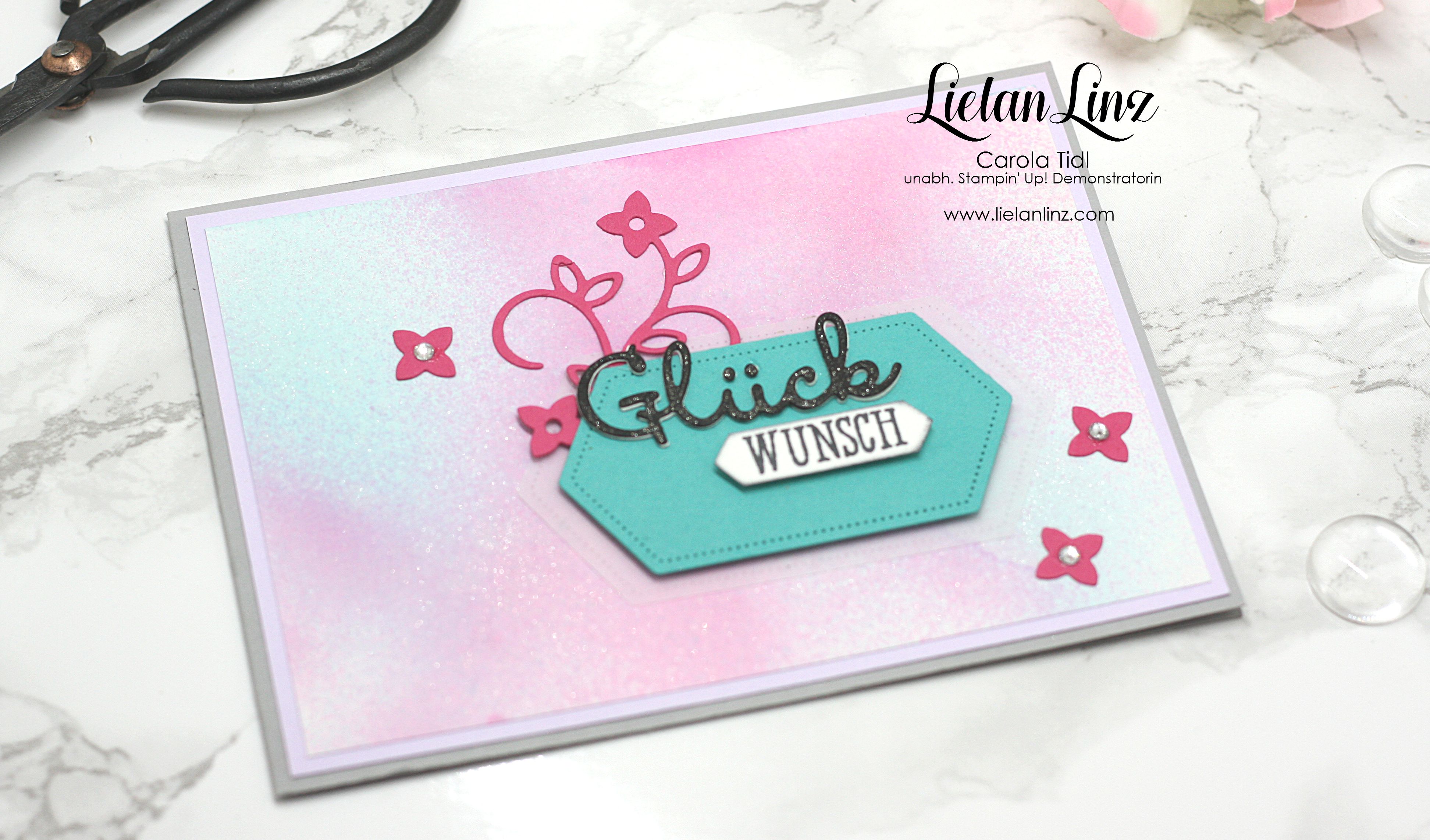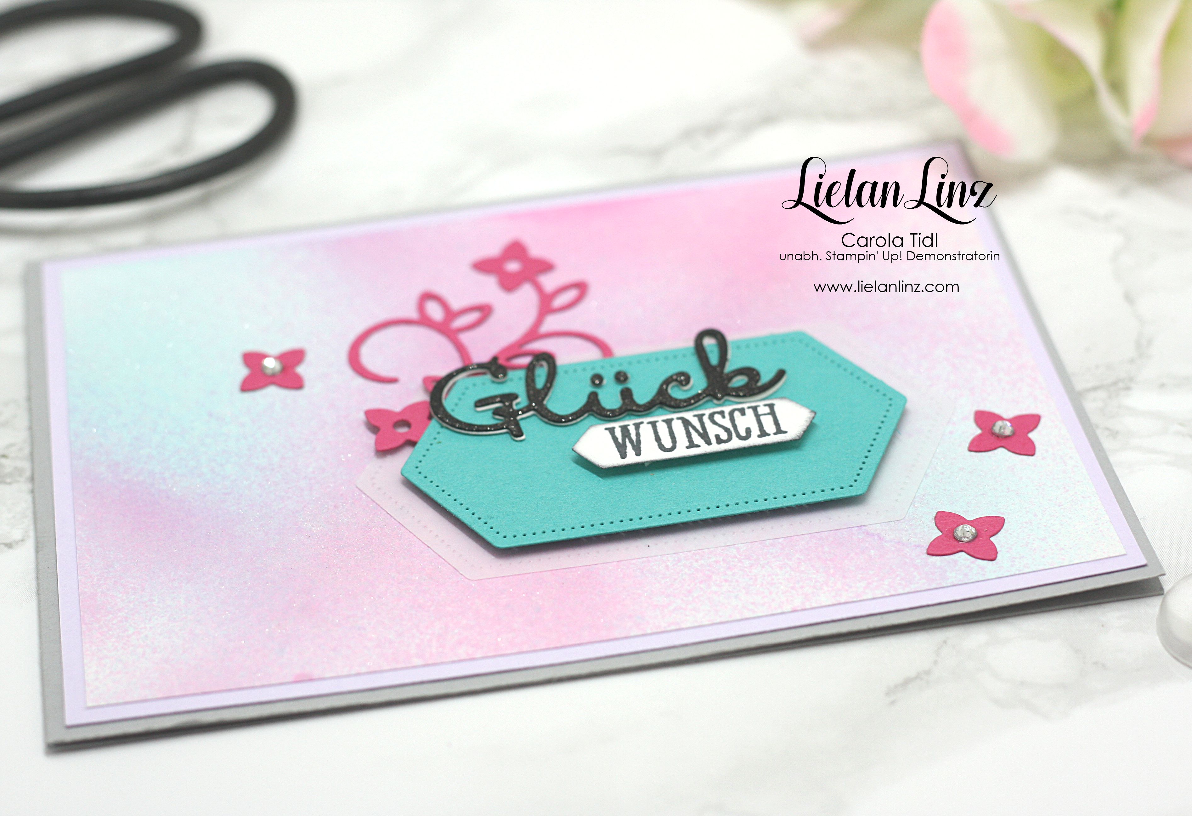 Den Spruch gestanzt und gestempelt und mit Wink of Stella – dem Anlass angemessen – beglitzert.