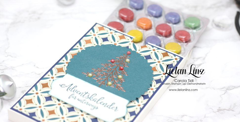 In knapp zwei Monaten ist Weihnachten und in in Vorbereitung darauf, freuen sich wohl alle großen und kleinen Kinder über einen Adventskalender :-) Ich zeige euch heute daher eine schnelle und einfache Verpackung für einen Adventskalender für unterwegs und als Besonderheit colorieren wir die Standardperlen von Stampin‘ Up!.
