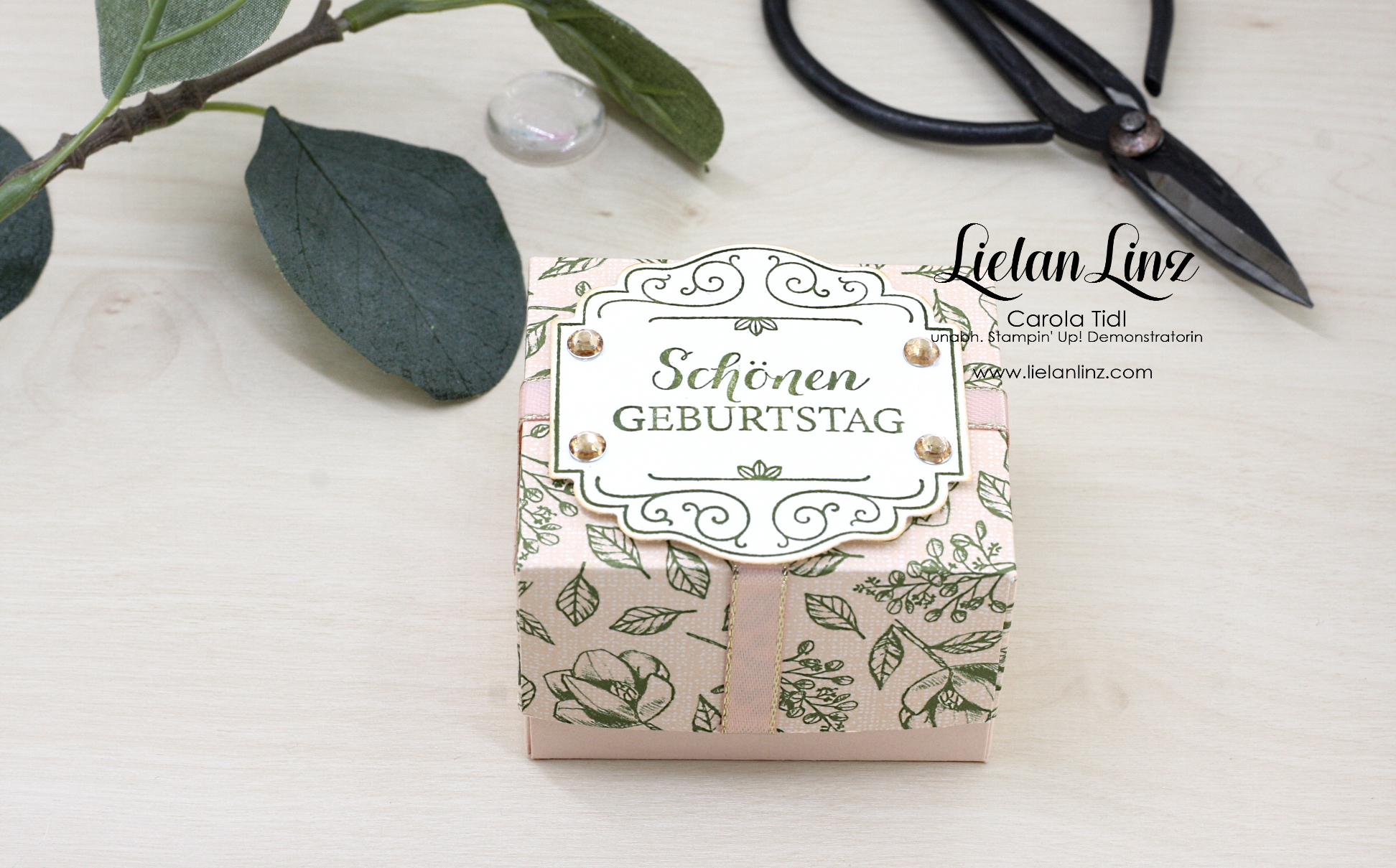 Heute wird’s wieder frühlingshaft, denn das Designerpapier Magonlienweg trifft auf das Stempelset „Mit Liebe angehängt“. Mit den Farben Blütenrosa und Waldmoos passt das exakt zu den gerade länger werdenden Tagen und der Sonne, die sich immer mal wieder zeigt.