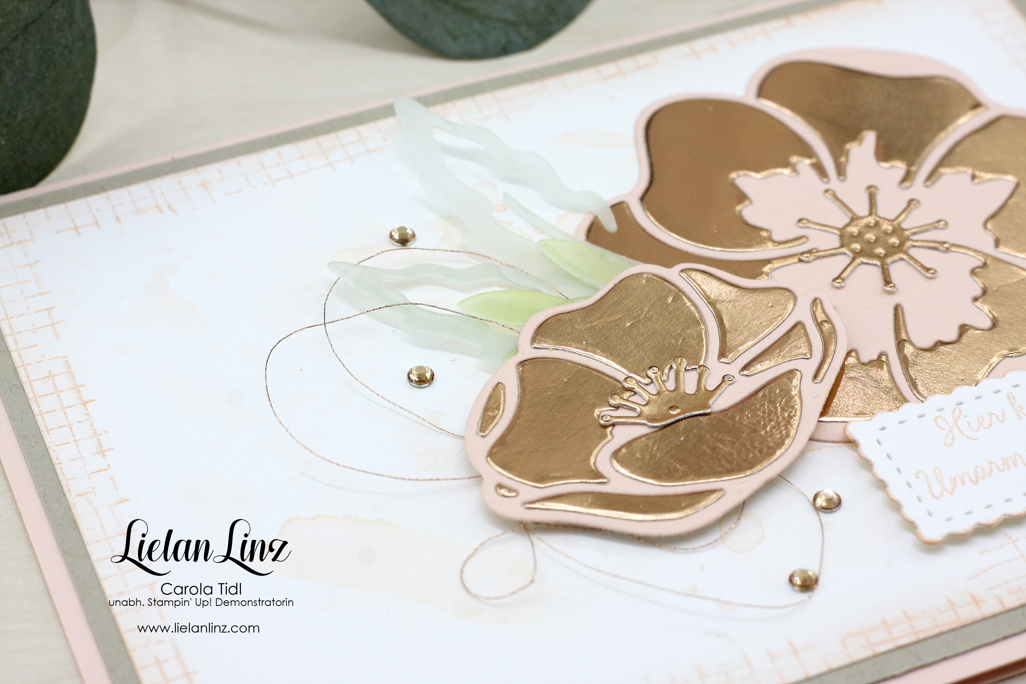 In Kombination mit den Stanzformen Mohnblüten und der Metallic-Folie Kupfer ist diese Karte entstanden: