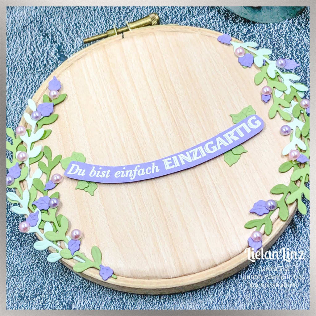 und wie so ein dekorierter Stickrahmen aussehen könnte, seht ihr hier: