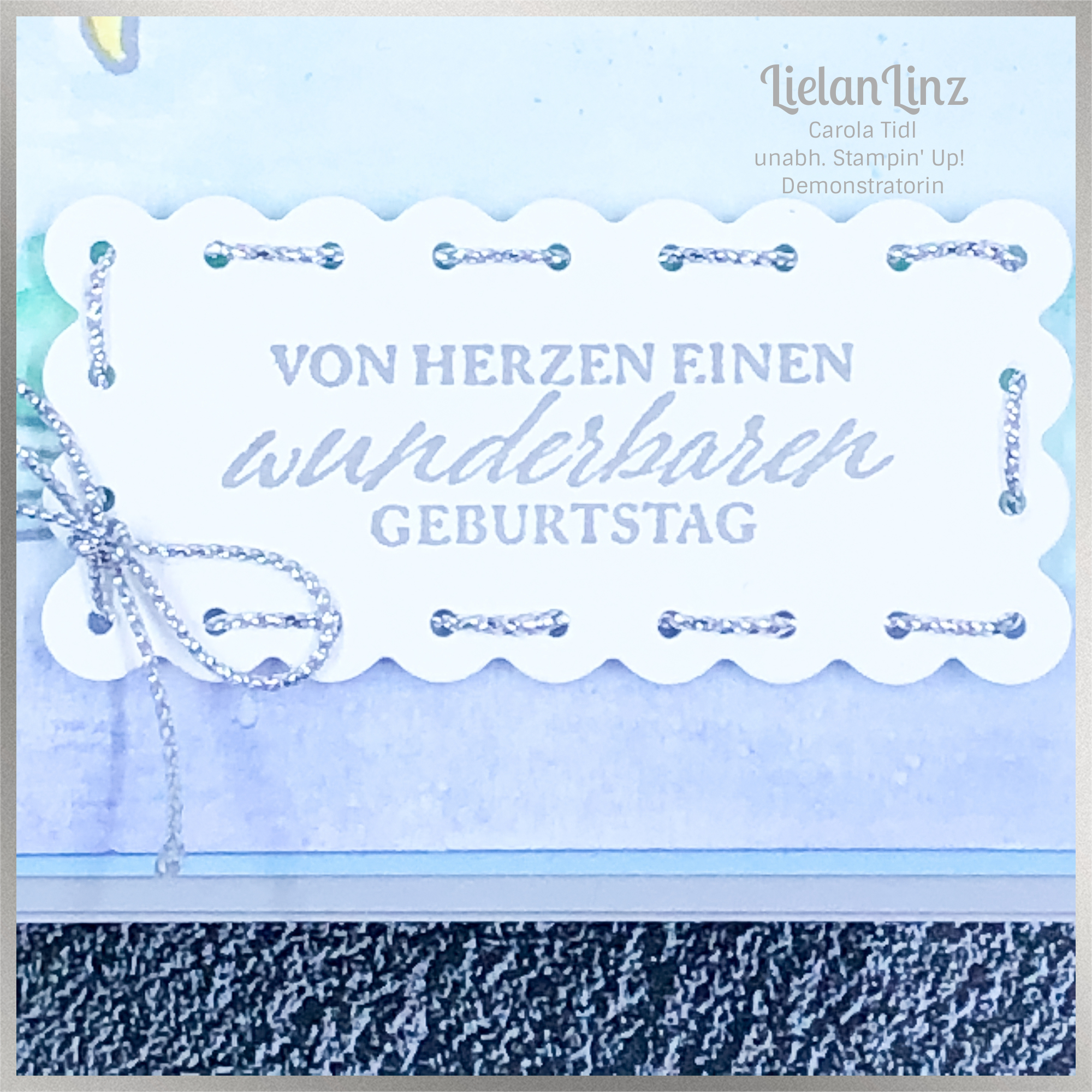 Dazu noch der Spruch aus dem Stempelset Elegant Gesagt und ausgestanzt mit einer Stanze aus dem Paekt Gewellte Konturen.