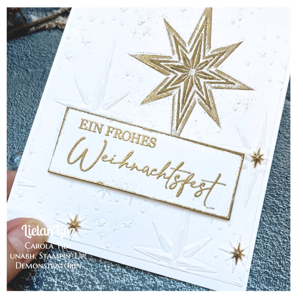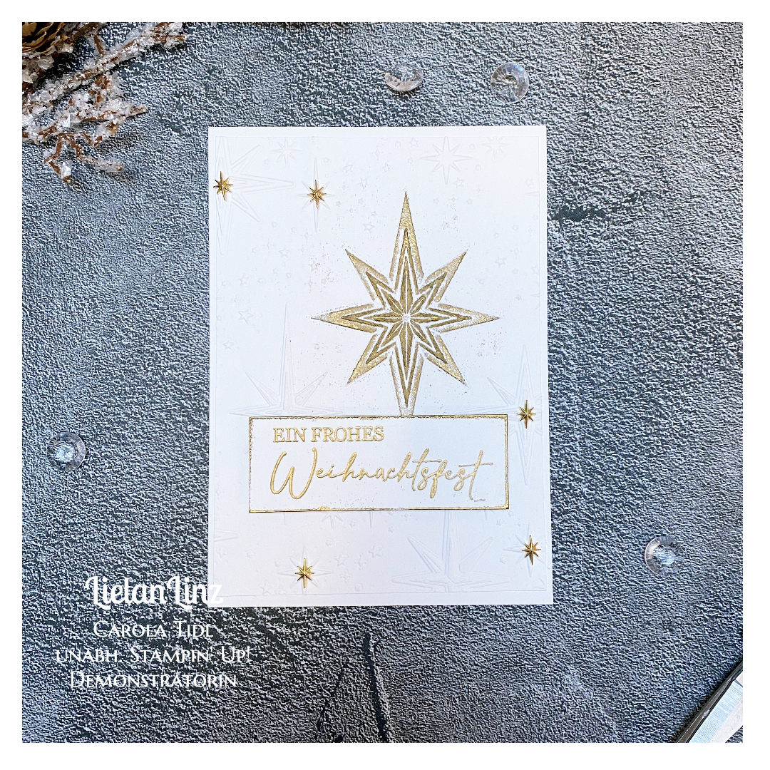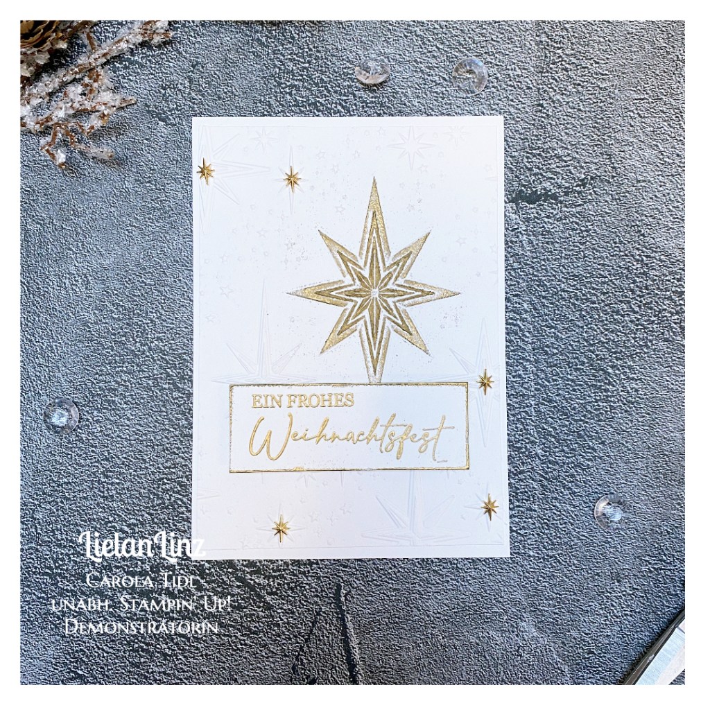 Als kleine Dekoration habe ich die selbstklebenden Sterne verwendet, die ihr ebenfalls im Herbst-Winter-Katalog 2023 von Stampin‘ Up! findet.