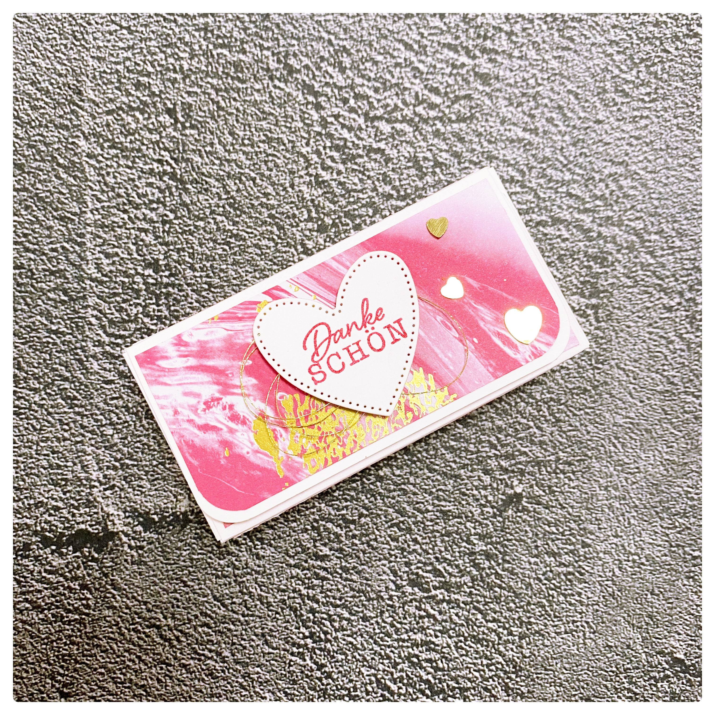 Unter anderem ist diese Box für 2 Teelichter entstanden .. mit dem Stempelset „Sortierte Grüße“, dem Designerpapier „Marmorierte Eleganz“ und den dazugehörigen Stanzformen „Elegante Herzen“.