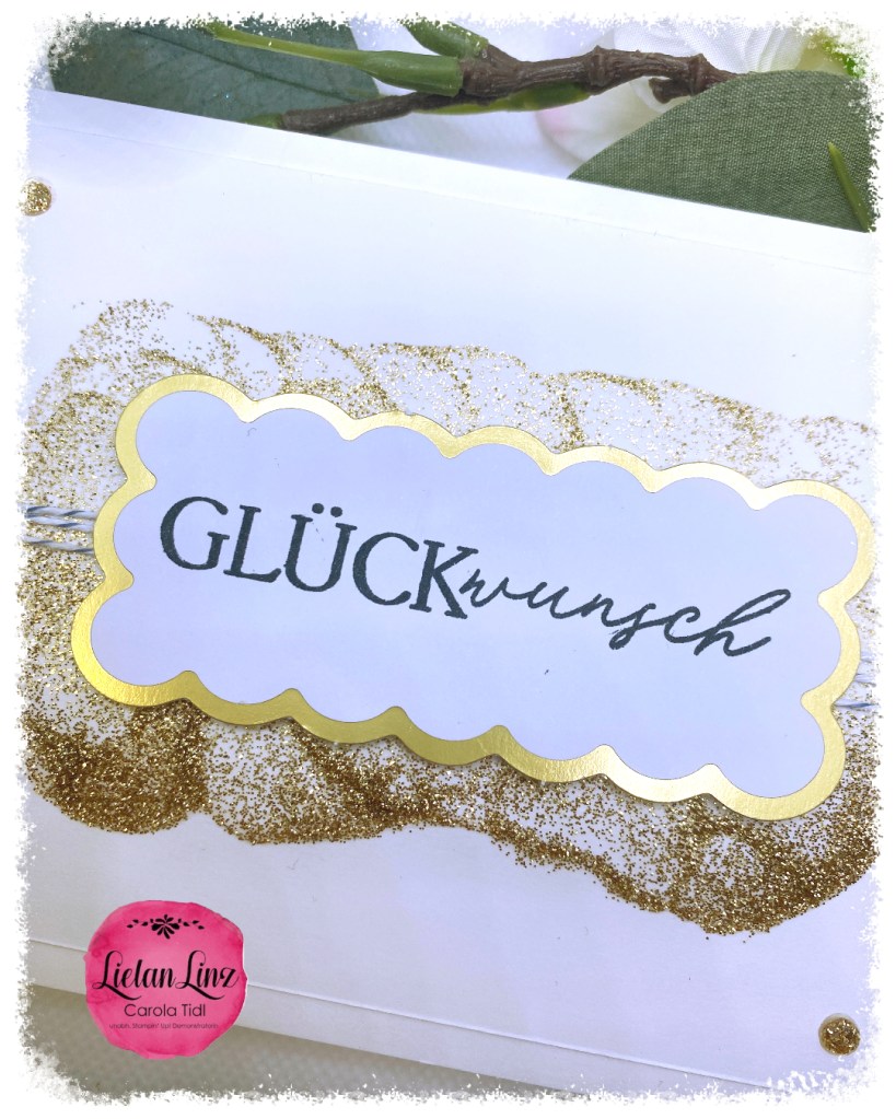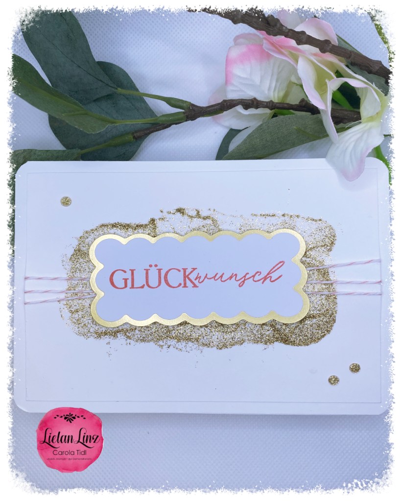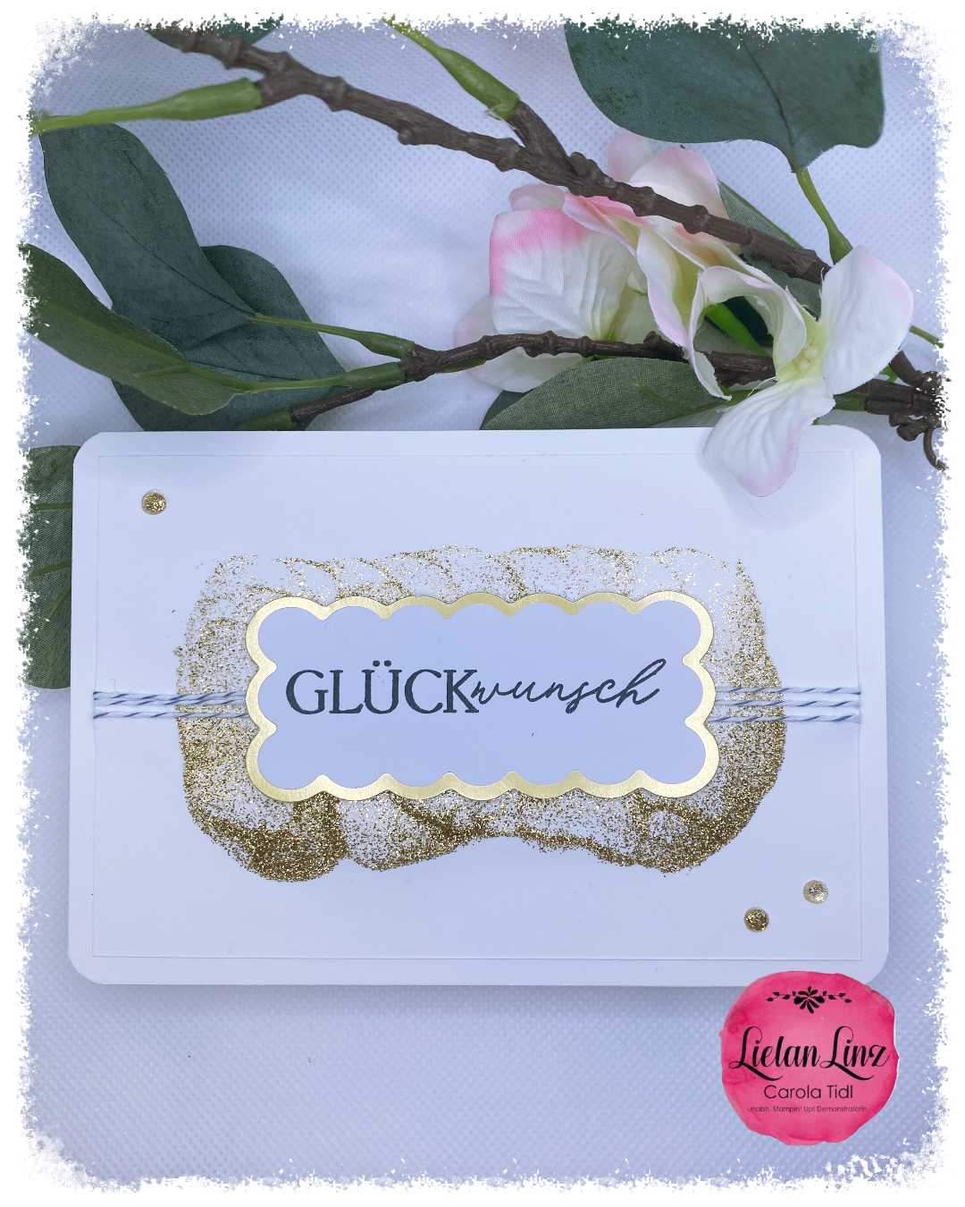 Die im Adventkalender enthaltene Glitzercreme habe ich bis jetzt nur für kleine Dekorationen verwendet. Nachdem da aber so viel drinnen ist, habe ich bei diesen Karten auch den Hintergrund damit gestaltet.