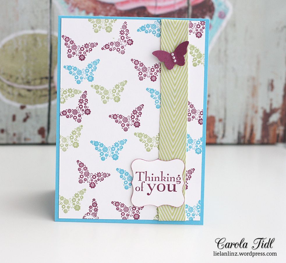 Viel zu lange ist es her, dass ich mich an einer Sketch- oder Color-Challenge beteiligt habe. Diese Woche kommen daher gleich zwei. Zum einen möchte ich euch heute die dieswöchige Pals Paper Arts Challenge Nr. 263 zeigen, die dieses Mal die Farben Farngrün (Pear Pizzaz), Himbeerrot (Rich Razzleberry) und Türkis (Tempting Turquoise) als Basis hatten.… Weiterlesen PPA263: Karte – Thinking of you