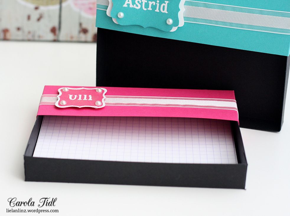 Als ich Anfang 2015 mit Papierbasteln im Allgemeinen und Stampin‘ Up! im Speziellen begonnen habe, war eines meiner ersten Projekte eine Zettelbox für Notizzettel in Größe A5. Die habe ich dann voller Stolz ins Büro getragen und sie hat mir bis heute gute Dienste geleistet. Und als ich vor kurzem die Chance bekam, mich einer… Weiterlesen für meine lieben Kolleginnen …