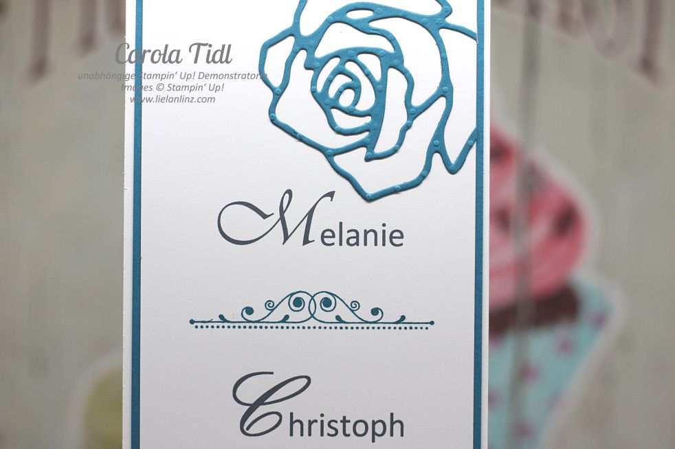 Letzte Woche Freitag hat meine Arbeitskollegin geheiratet <3 Ich durfte das Brautpaar hier in Sachen Hochzeitpapeterie seit November letzten Jahres (zum Start mit den Save-the-date-Karten) begleiten. Jetzt darf ich euch die Sachen zeigen :-) Melanie und Christoph haben sich für florales Muster entschieden, so dass hier die Thinlits Rosengarten und die Thinlits Florale Fantasie zum… Weiterlesen Hochzeitspapeterie | Stampin‘ Up!